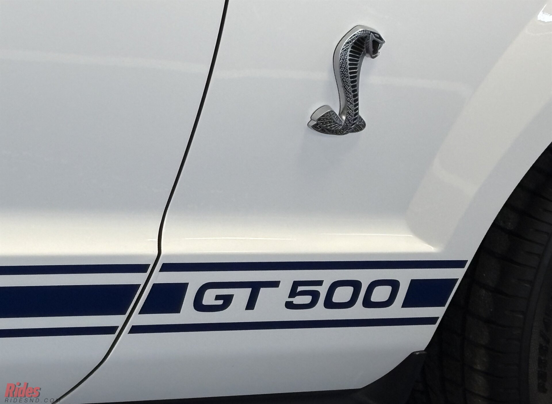 Visually, the GT500 strikes the perfect balance between restraint and menace. The classic Shelby striping, functional hood heat extractors, and purposeful stance communicate intent without theatrics. Inside, the cabin remains true to the era, featuring supportive sport seats in leather, Shelby-branded details, and a driver-focused layout that reminds you this car was engineered before digital filters softened the experience.