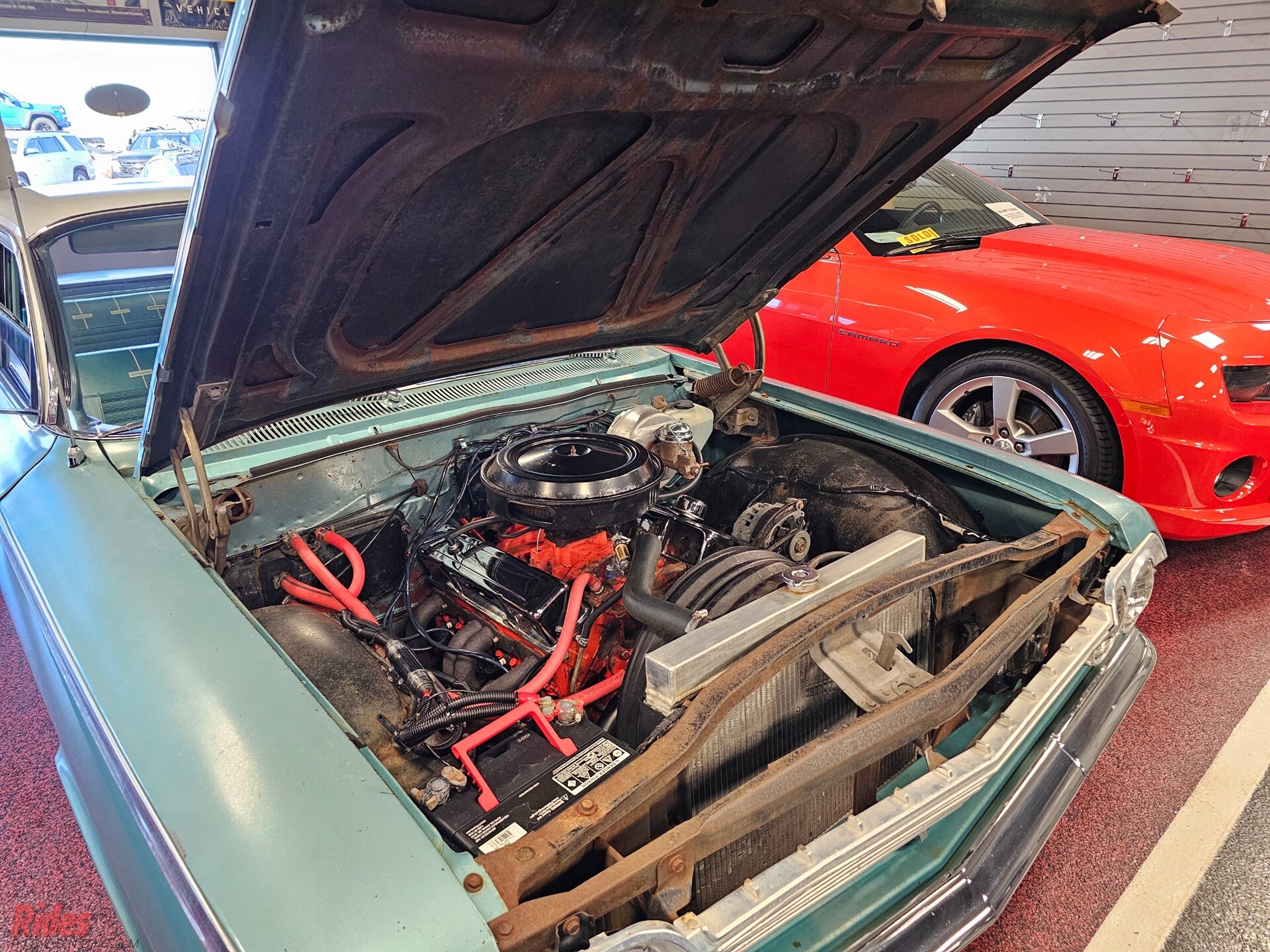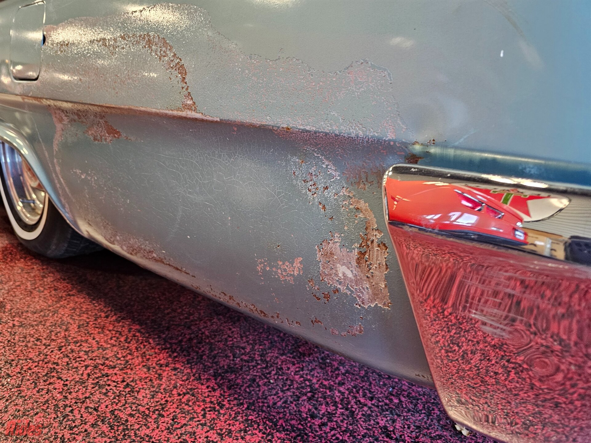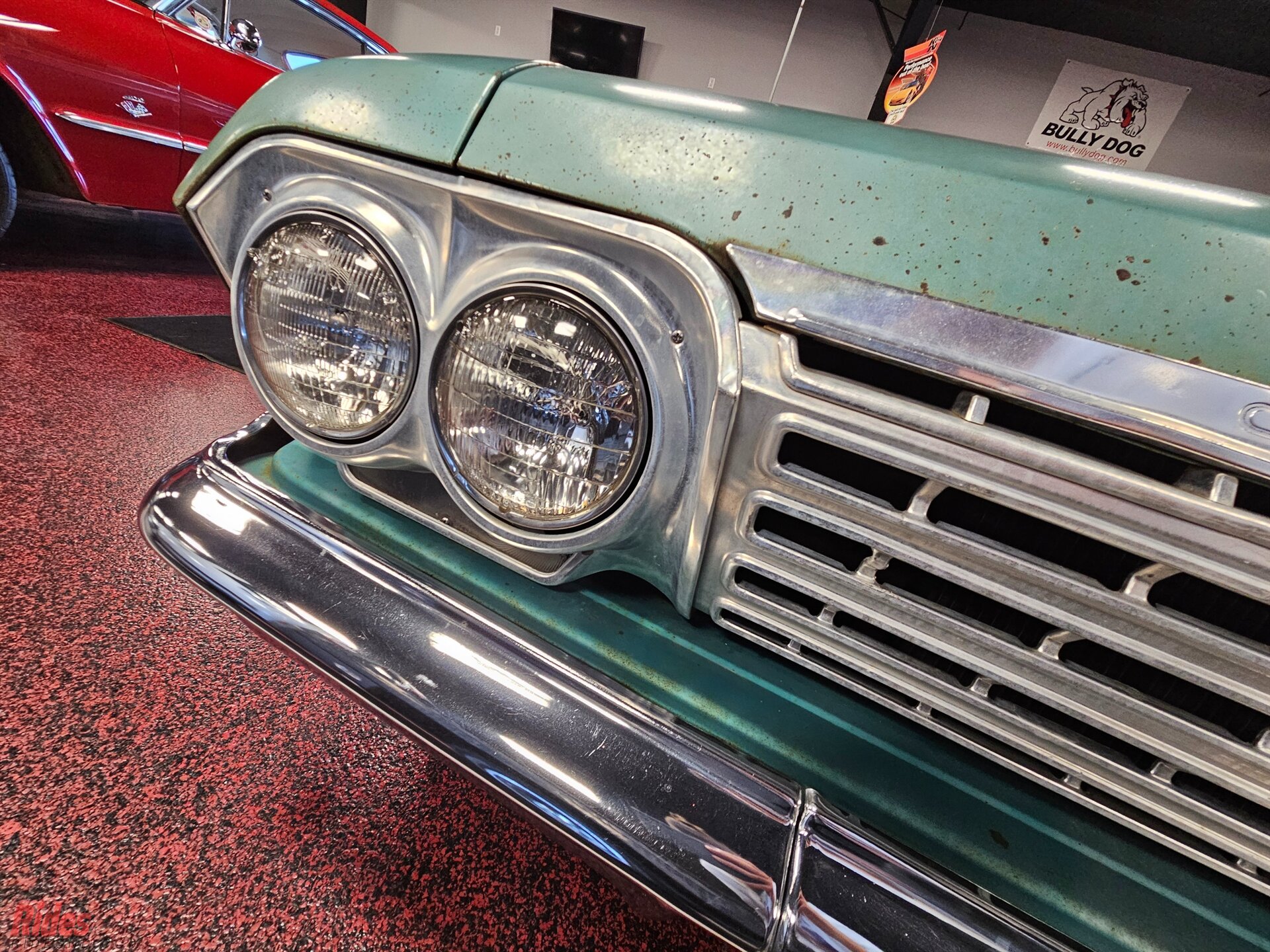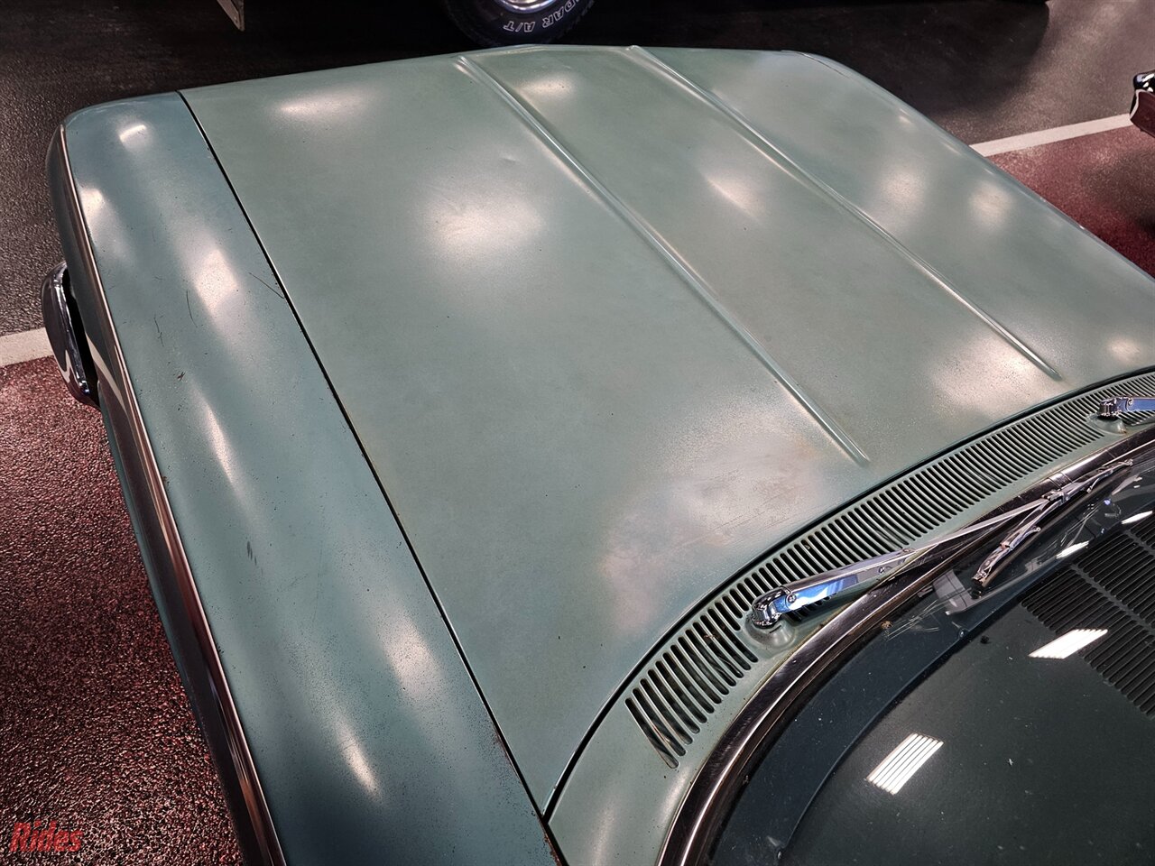 The smooth contours have there share of.... patina here and there. The clear is non existent as it is single stage paint and showing some aging as well. The grill is original, right along with the rest of the trim, and it all looks pretty good! As you open the hood you will notice it is pretty clean CLEAN!