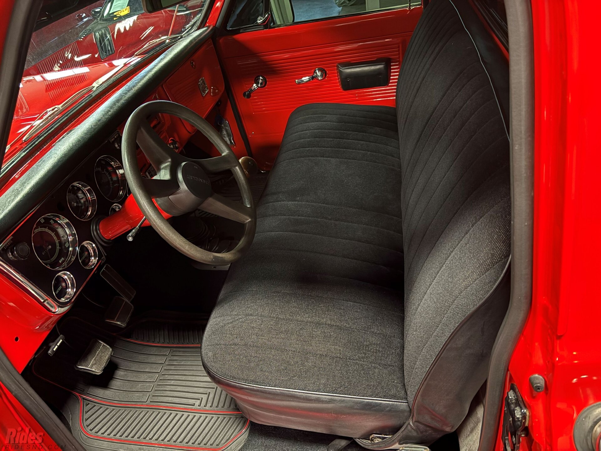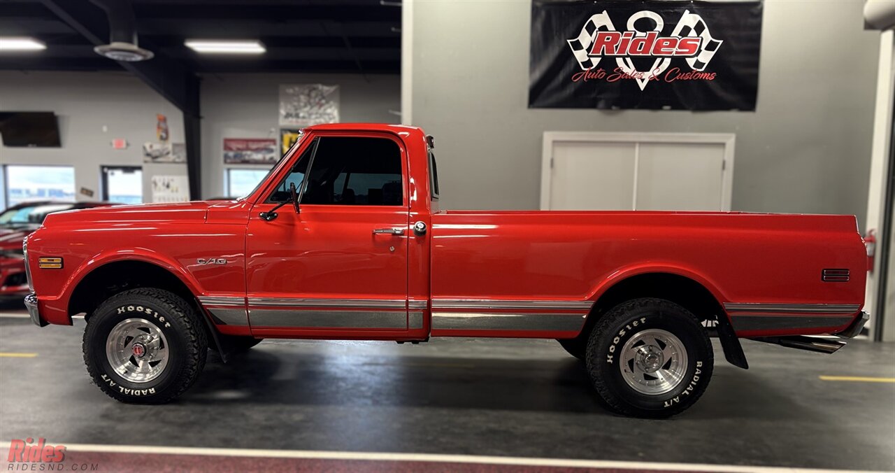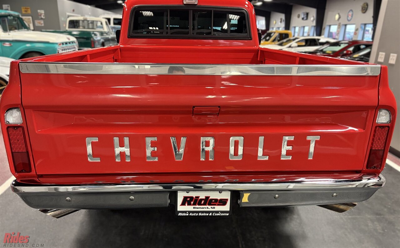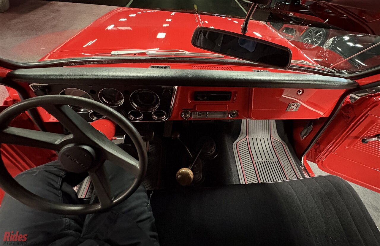This long-box ’69 K10 has been brought back to life with the kind of restraint that separates a true restoration from a rolling costume. Under the hood sits a strong-running 355 small block V8, delivering that unmistakable carbureted rumble—equal parts mechanical symphony and blue-collar heartbeat. Paired to a “four on the floor” 4-speed manual transmission, this truck keeps you connected to the road in a way modern trucks simply can’t replicate. Every shift feels earned.