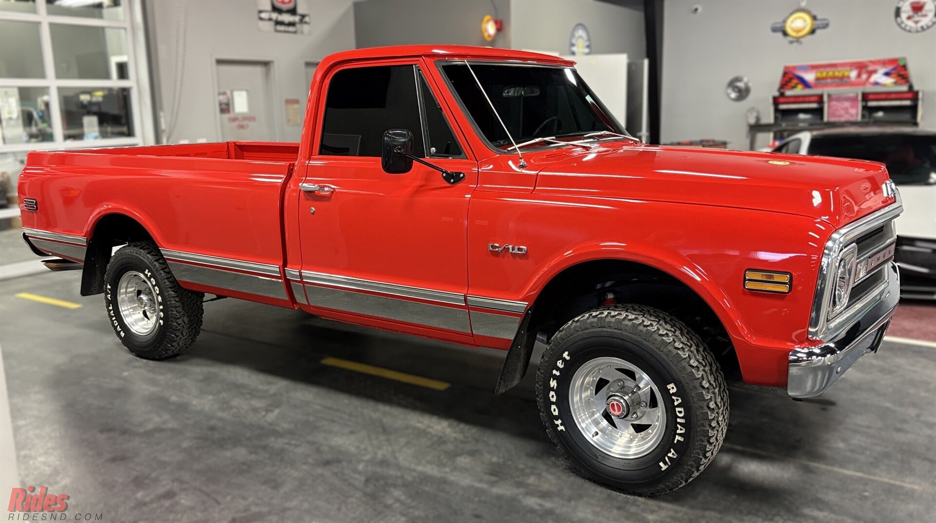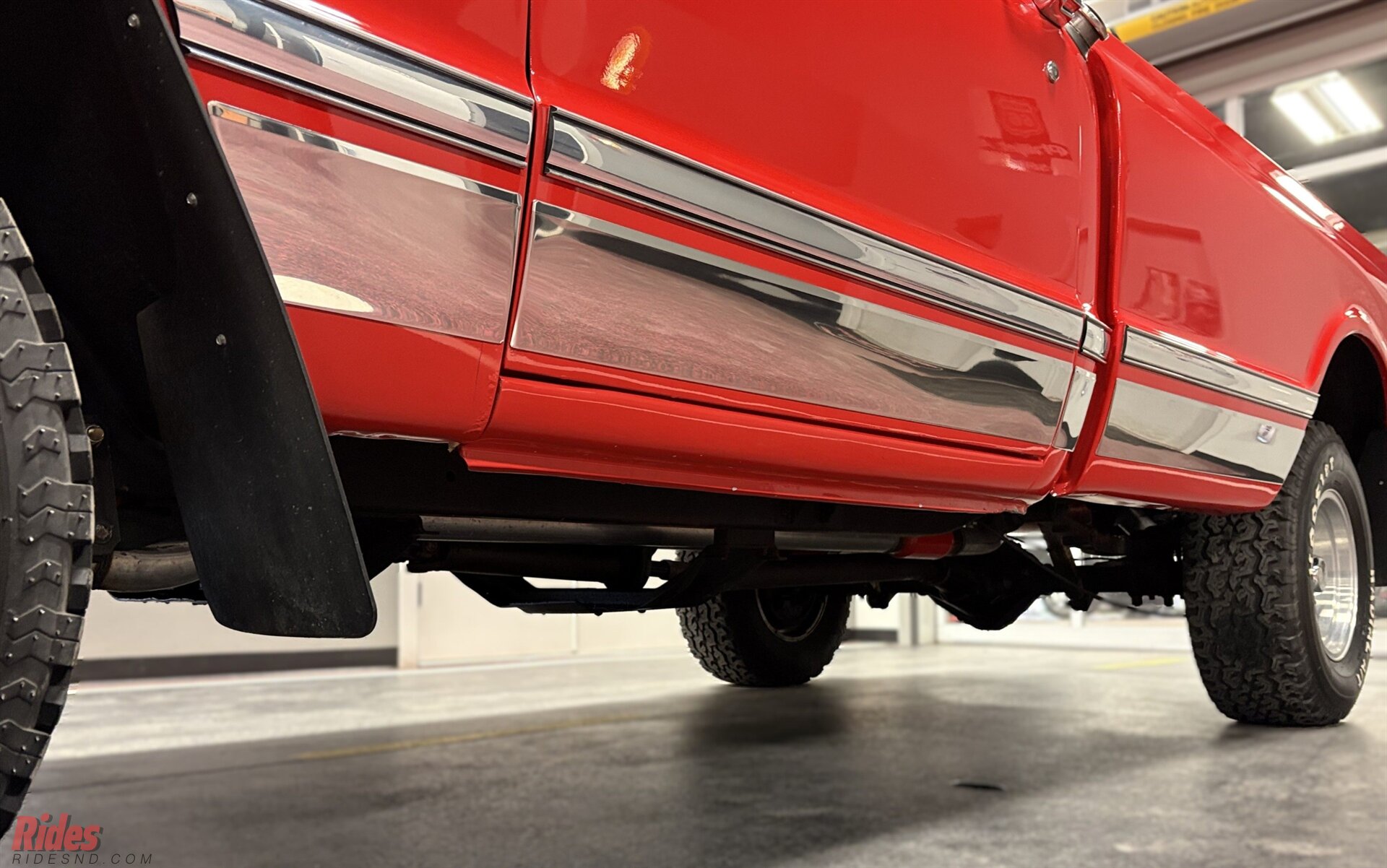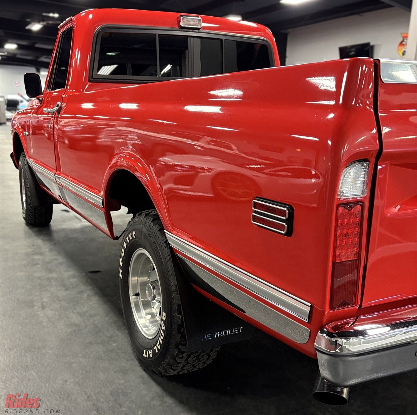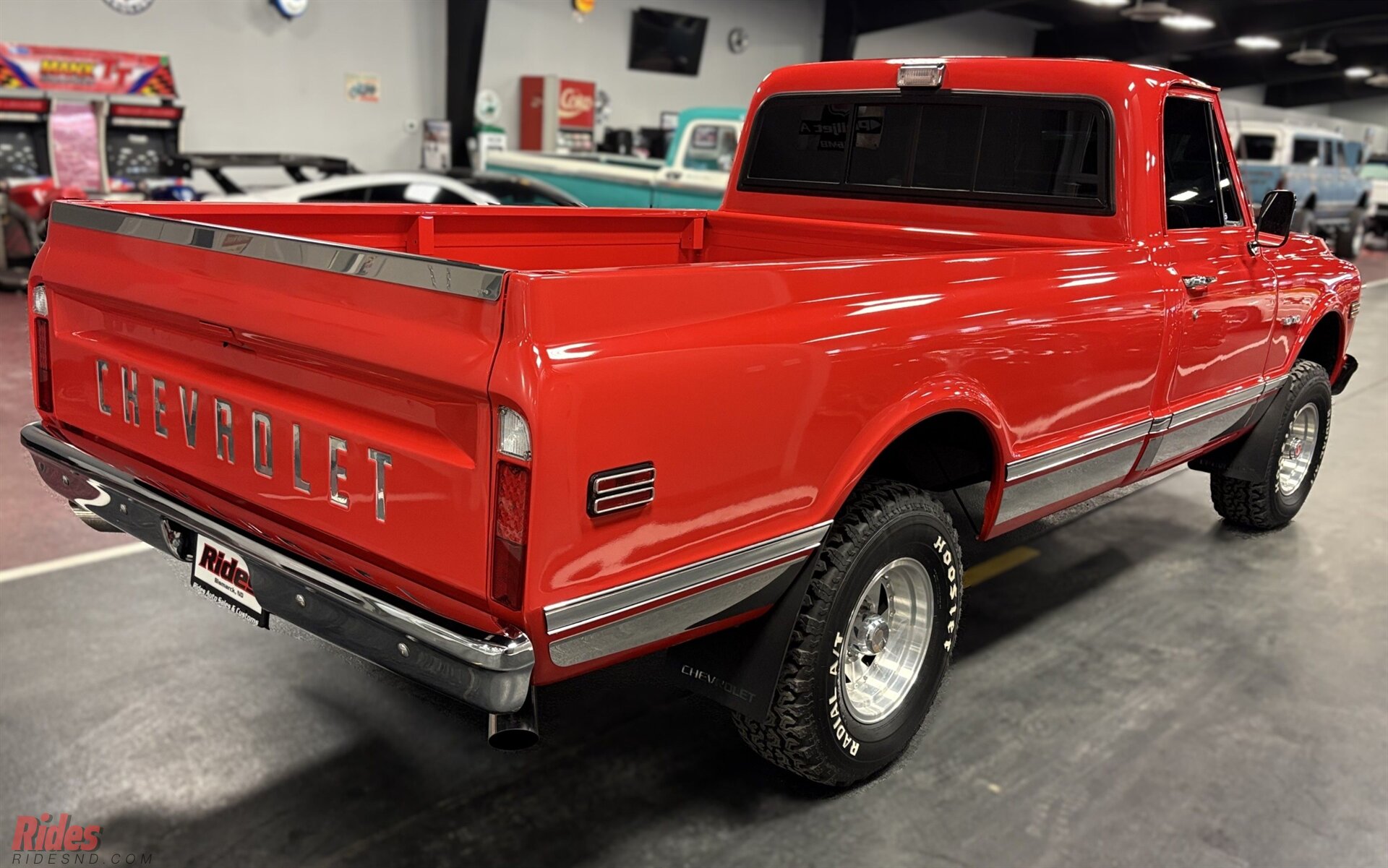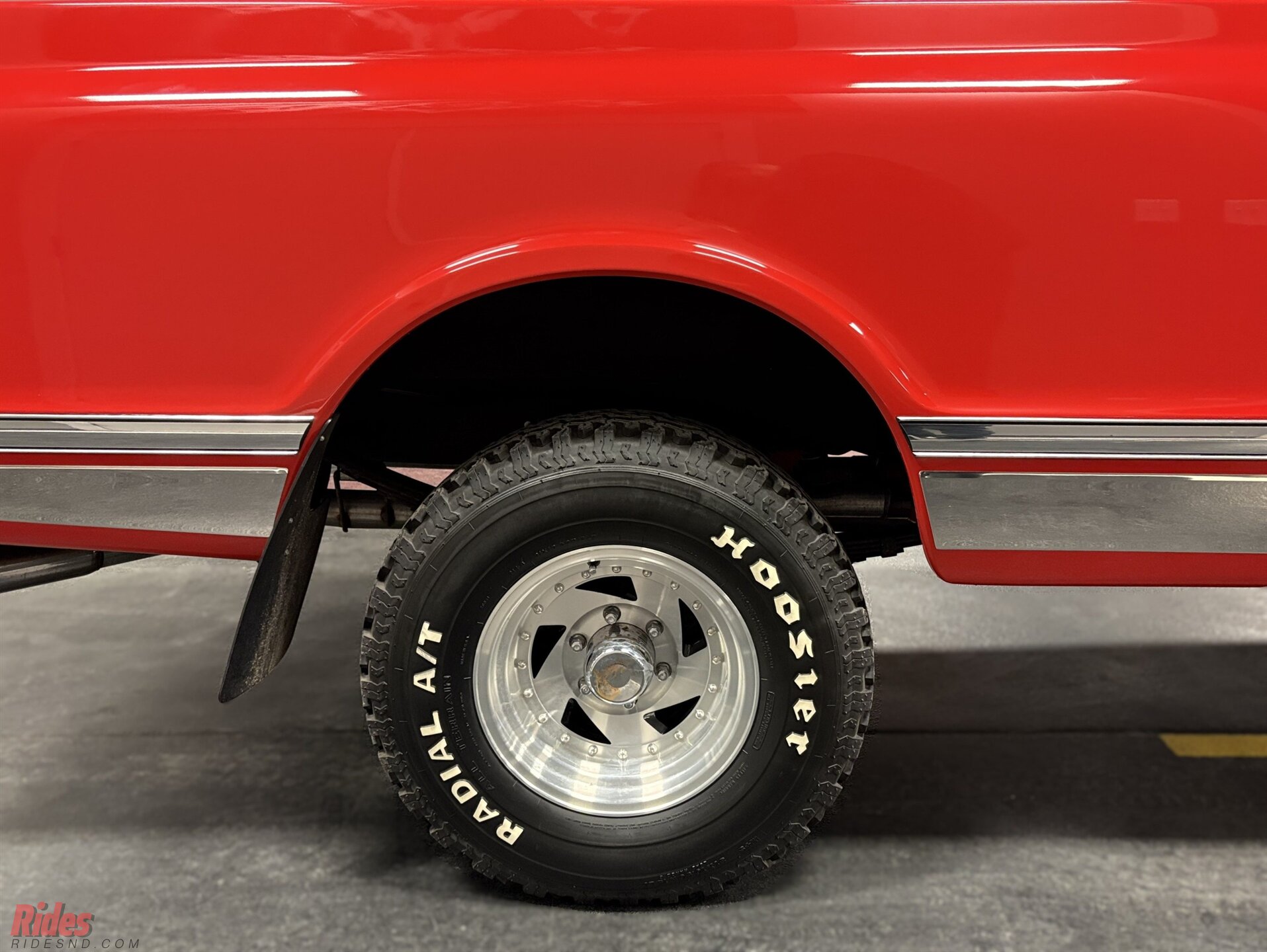 Down below, it’s sitting on a fresh set of Hoosier Radial A/T tires—beefy, aggressive, and in like-new condition. They give the truck a planted, capable look without going overboard. Think “ready for a dirt road detour,” not “lost in the mud pit.”