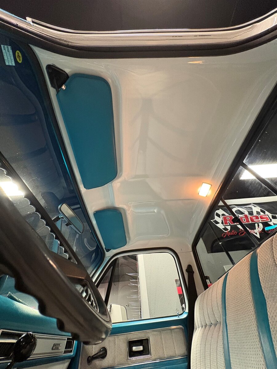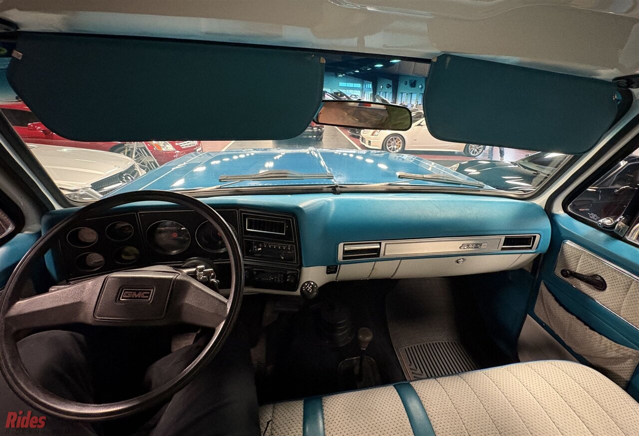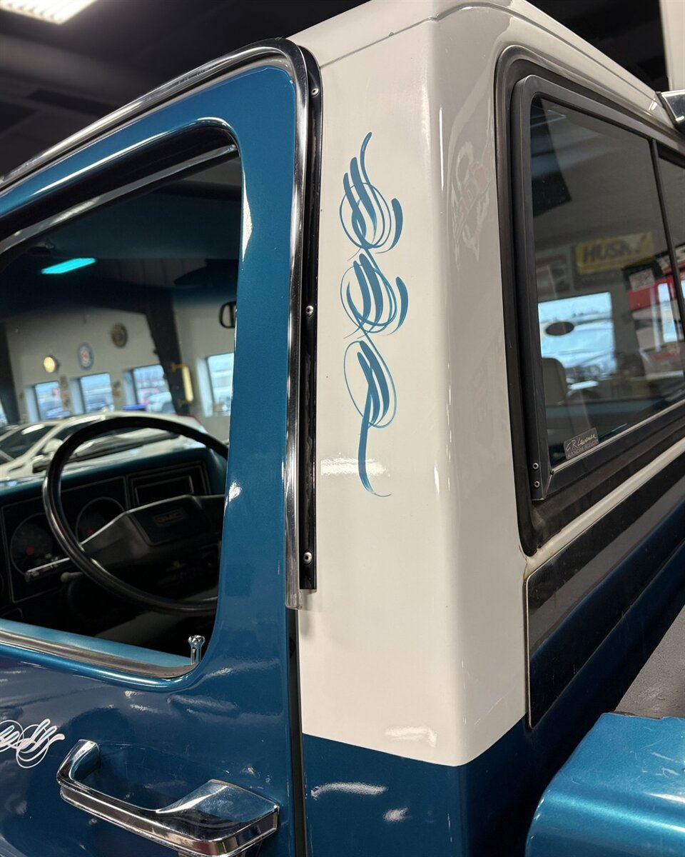 This GMC received a restoration back in 1996, and today it proudly wears its age with character. The teal exterior, with hand-painted accents, shows honest wear and fading, giving it that unmistakable survivor vibe. It’s not a trailer queen, it’s a rolling time capsule. The kind of truck you park out front instead of hiding in the garage.
