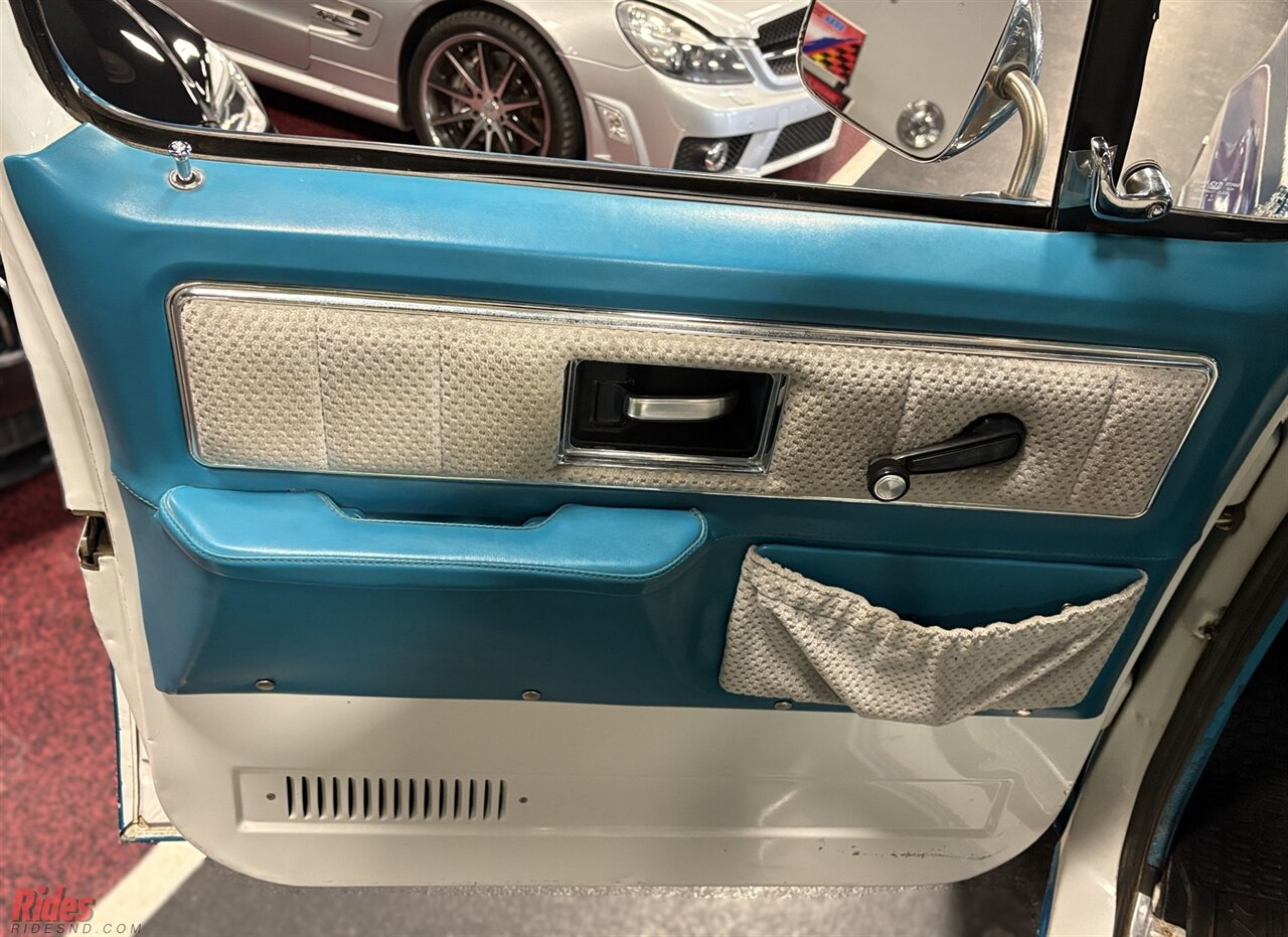 This GMC received a restoration back in 1996, and today it proudly wears its age with character. The teal exterior, with hand-painted accents, shows honest wear and fading, giving it that unmistakable survivor vibe. It’s not a trailer queen, it’s a rolling time capsule. The kind of truck you park out front instead of hiding in the garage.