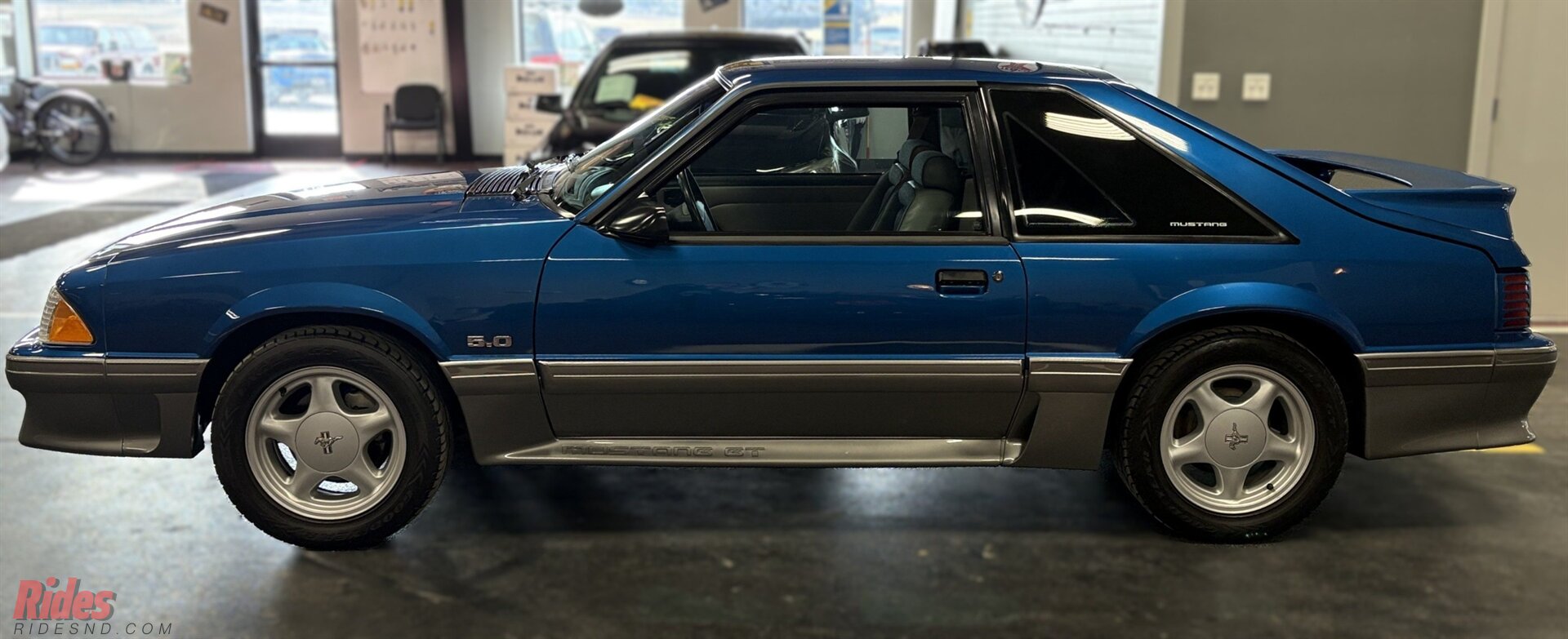 Dressed in a highly desirable Ultra Blue exterior, this Mustang doesn’t just show up—it arrives. The blue on gray paint scheme pops with attitude, with the new lower body moldings receiving a darker gray re-coat. Along with fresh body moldings are color-matched new front and rear bumpers, door handles, remote door locks, and an aftermarket head unit wired for audio/pre-amp round out the enhancements.