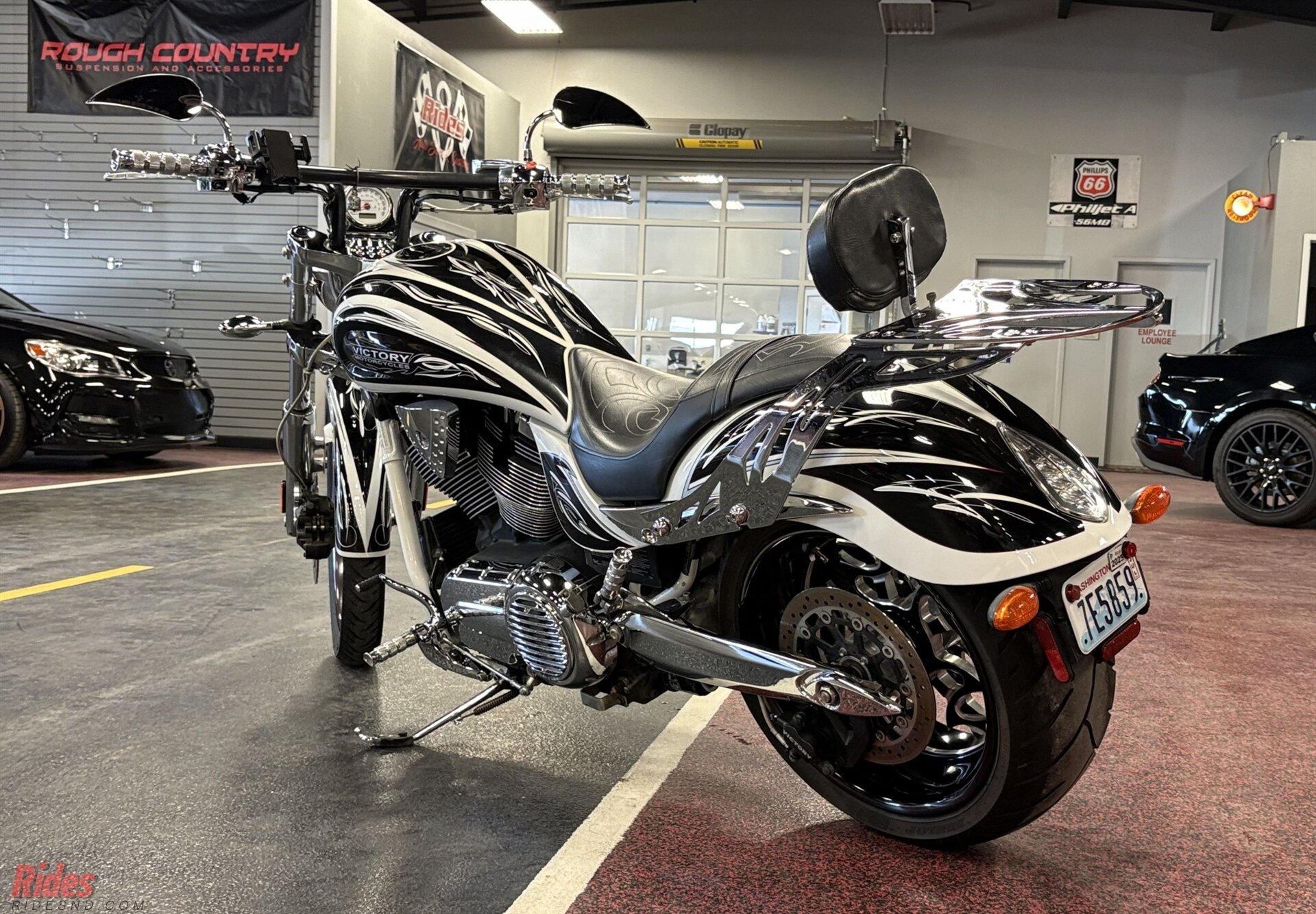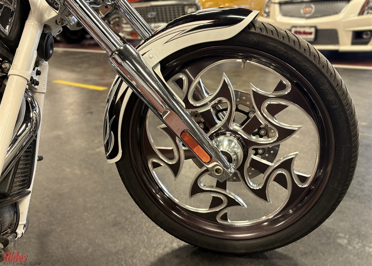 At the center of the show sits the muscular Freedom V-twin, delivering strong low-end torque and a deep, unmistakable rumble. The stretched stance, massive rear tire, and ultra-low profile give this Victory Jackpot a presence that feels more like rolling sculpture than transportation. Everywhere you look, there are signature-series details that separate it from a standard cruiser – custom paint accents, premium finishes, and the distinctive Ness styling touches that made this series so sought after.