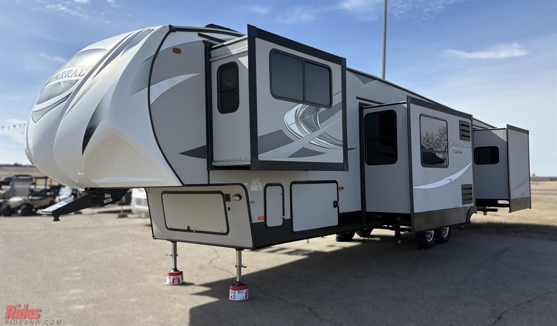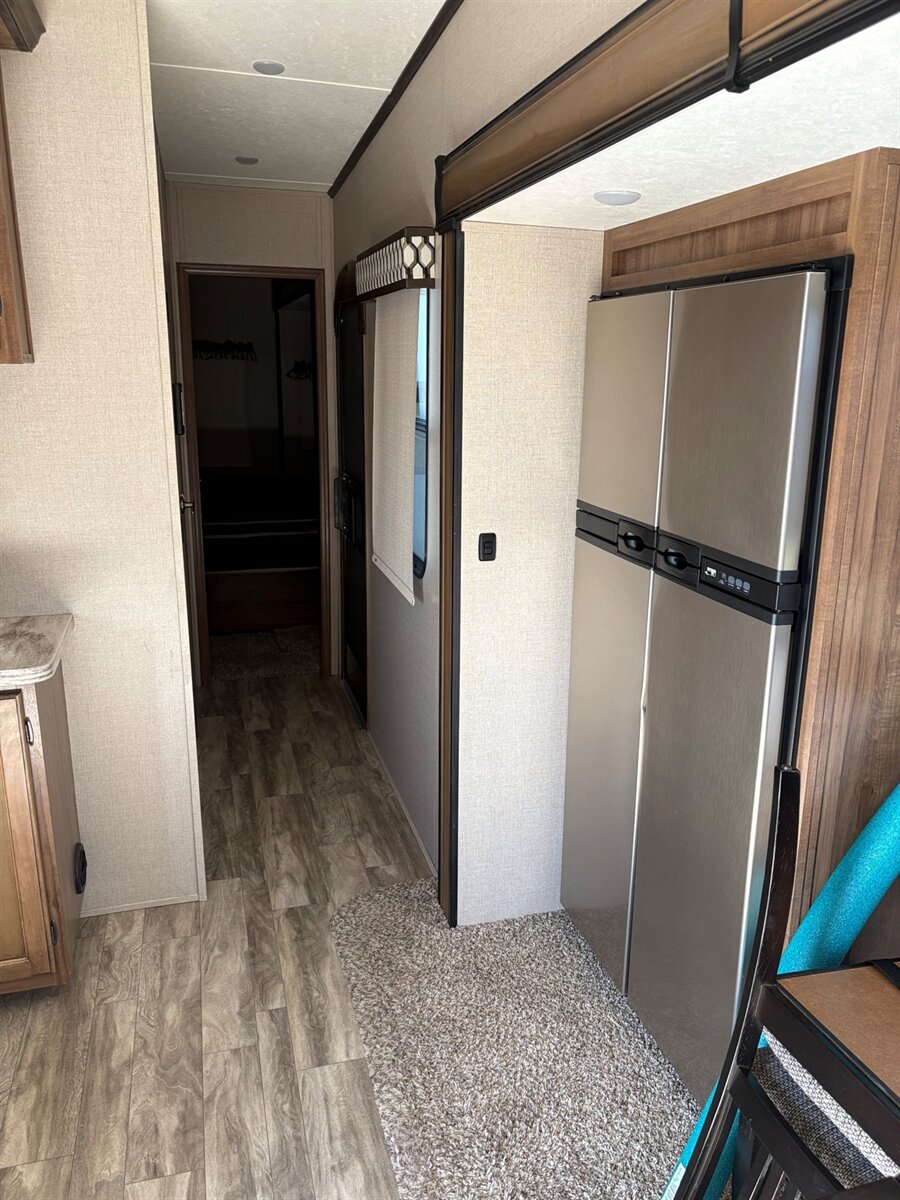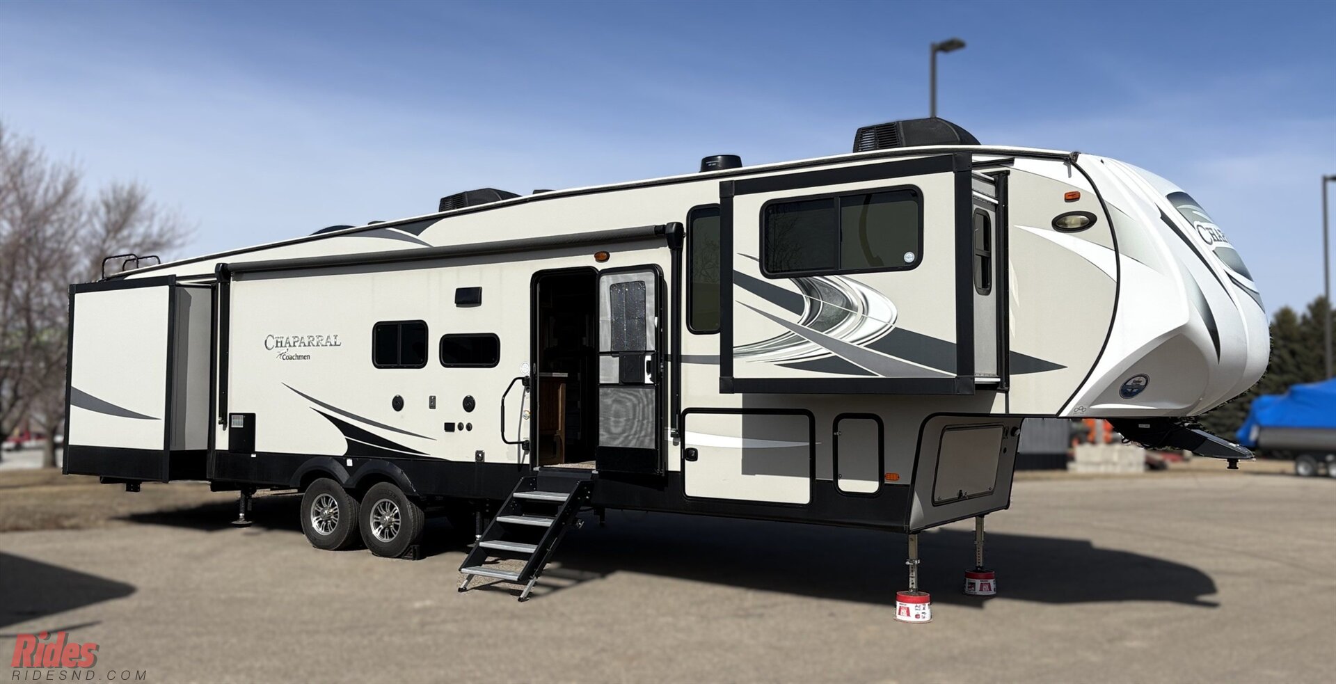 Step into residential-style luxury on wheels with this extra clean 2019 Coachmen Chaparral 370FL—a fifth wheel that stretches out like a rolling penthouse, thanks to its impressive five-slide layout that creates an incredibly open and livable interior.