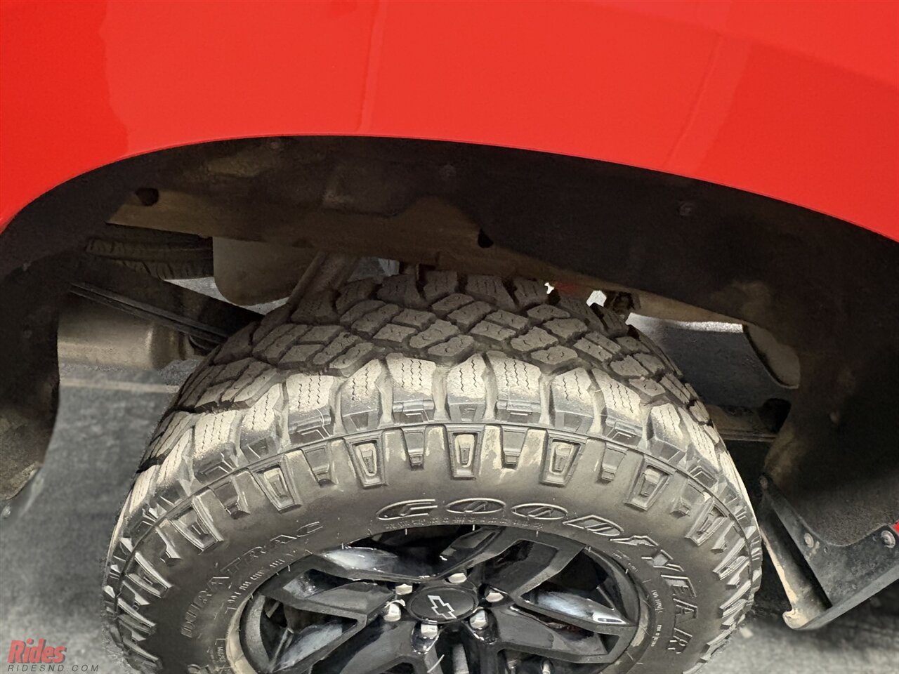 Built for more than pavement, it features the Z71 Off-Road Package, complete with off-road suspension, skid plates, and hill descent control—ready for dirt, snow, and everything in between. Sitting on 18-inch high-gloss black wheels wrapped in Goodyear Wrangler Duratrac tires, this truck grips the road with confidence while looking the part.