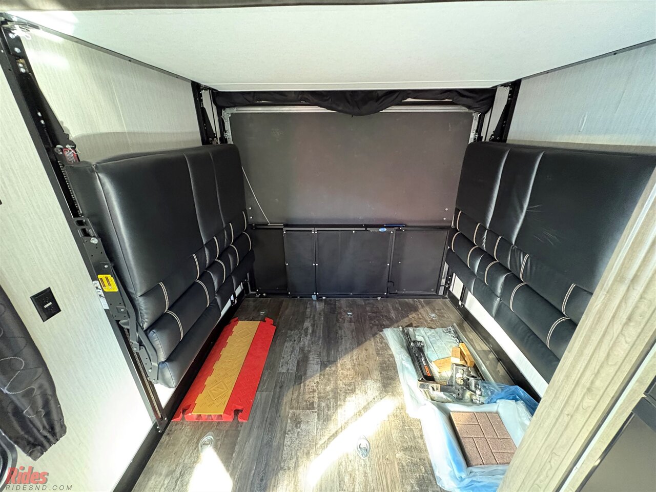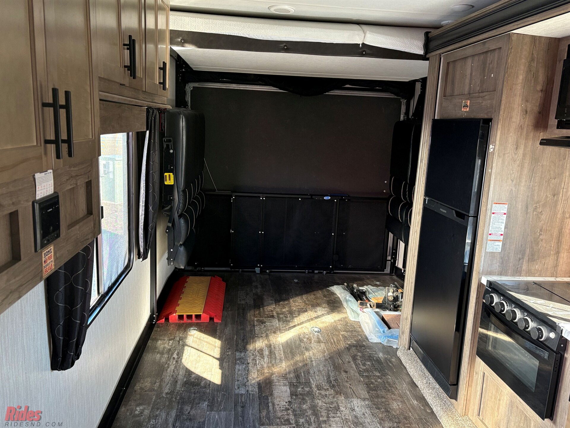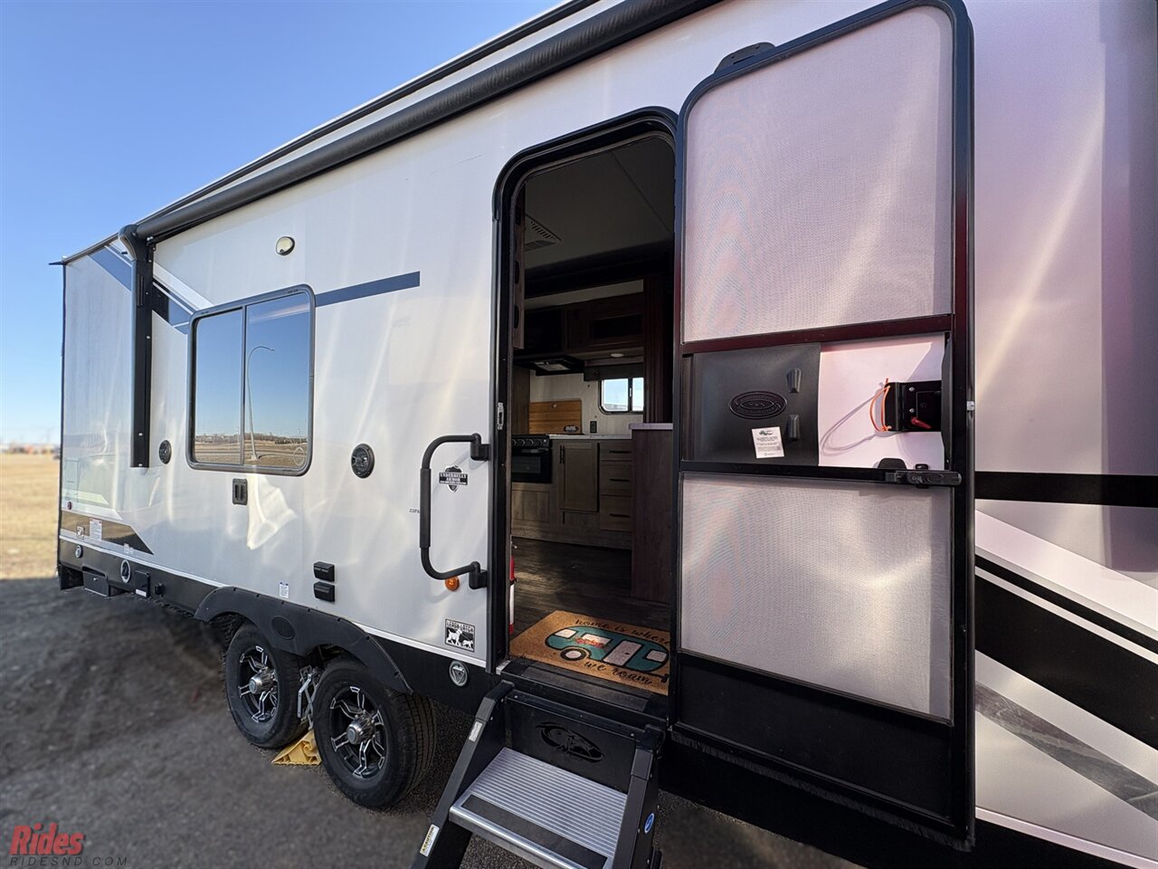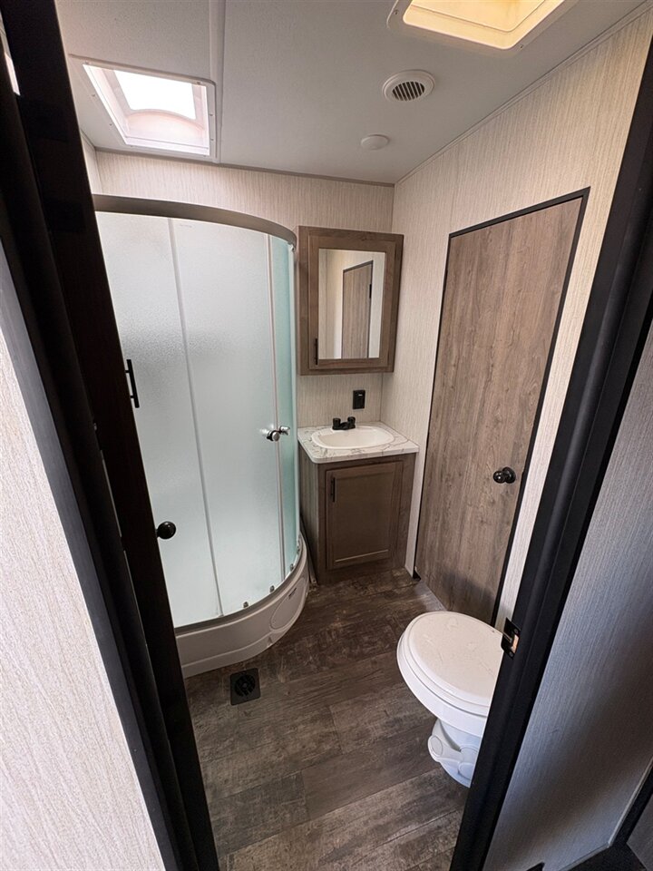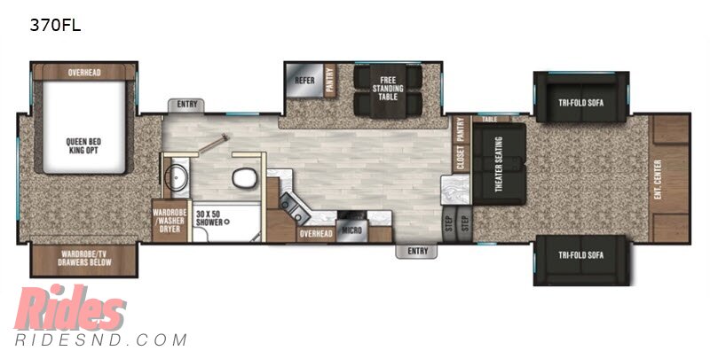 This fifth wheel include stabilizer jacks, a second 15K A/C unit in the bedroom, and 50 Amp service. You will appreciate 30 Amp service in the trailer, a power tongue jack, and ramp door cables. Also included are USB charging stations to keep all your gadgets charged and ready to go, premium Teddy Bear bunk mats for comfortability, and a reverse activated light and backup camera for easy loading and unloading!