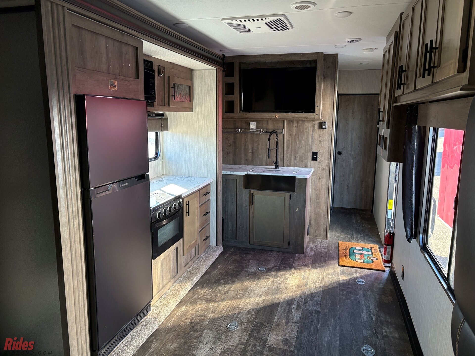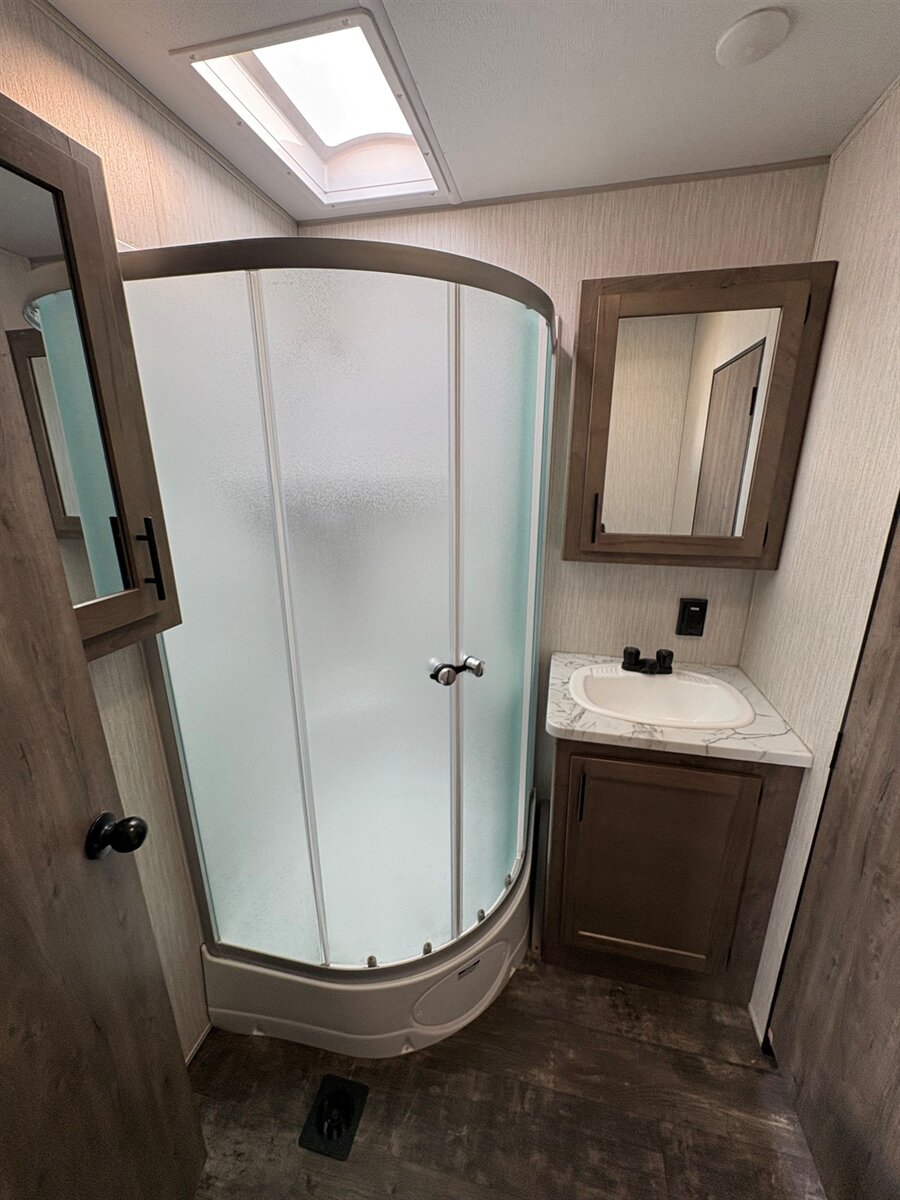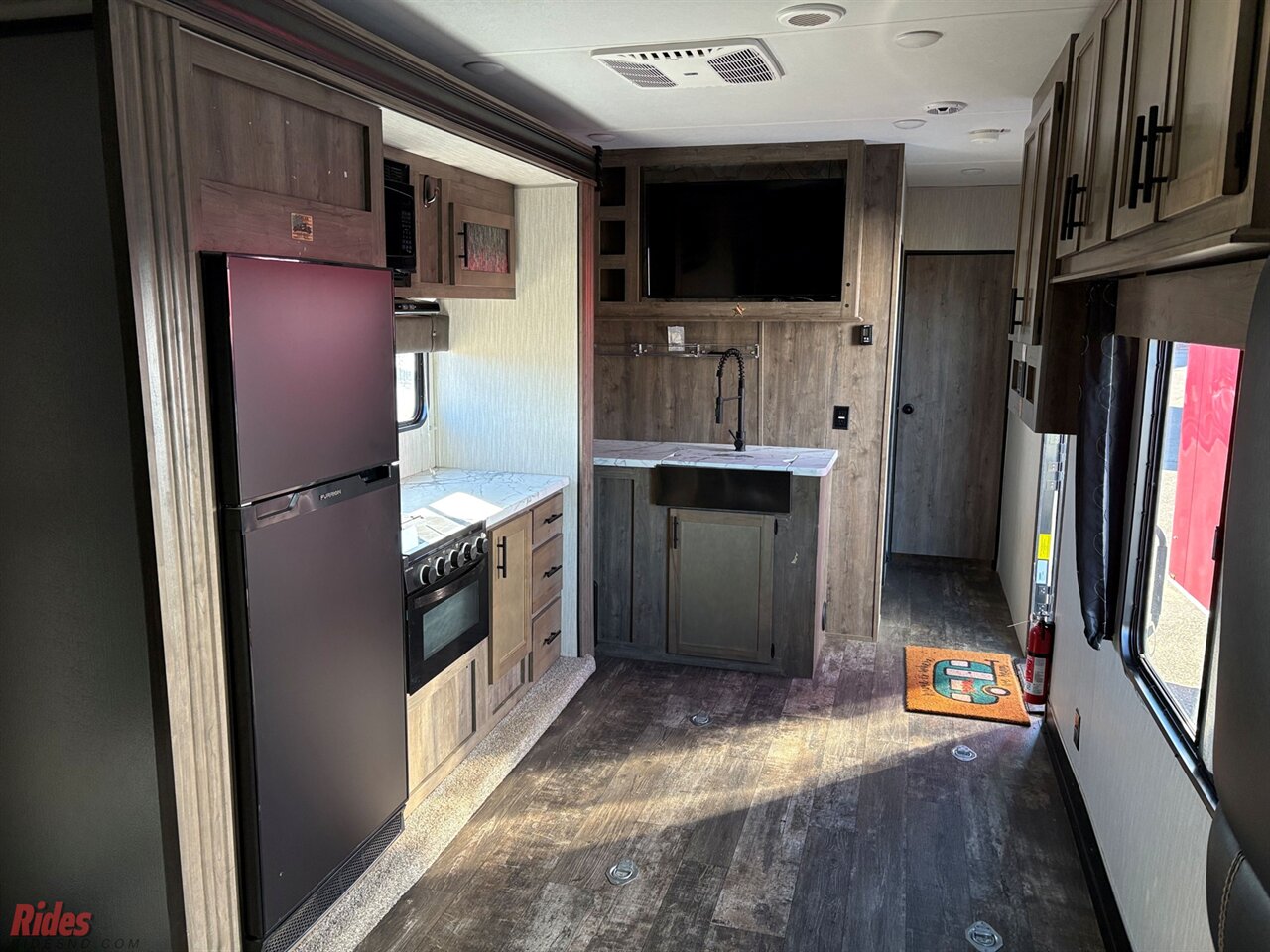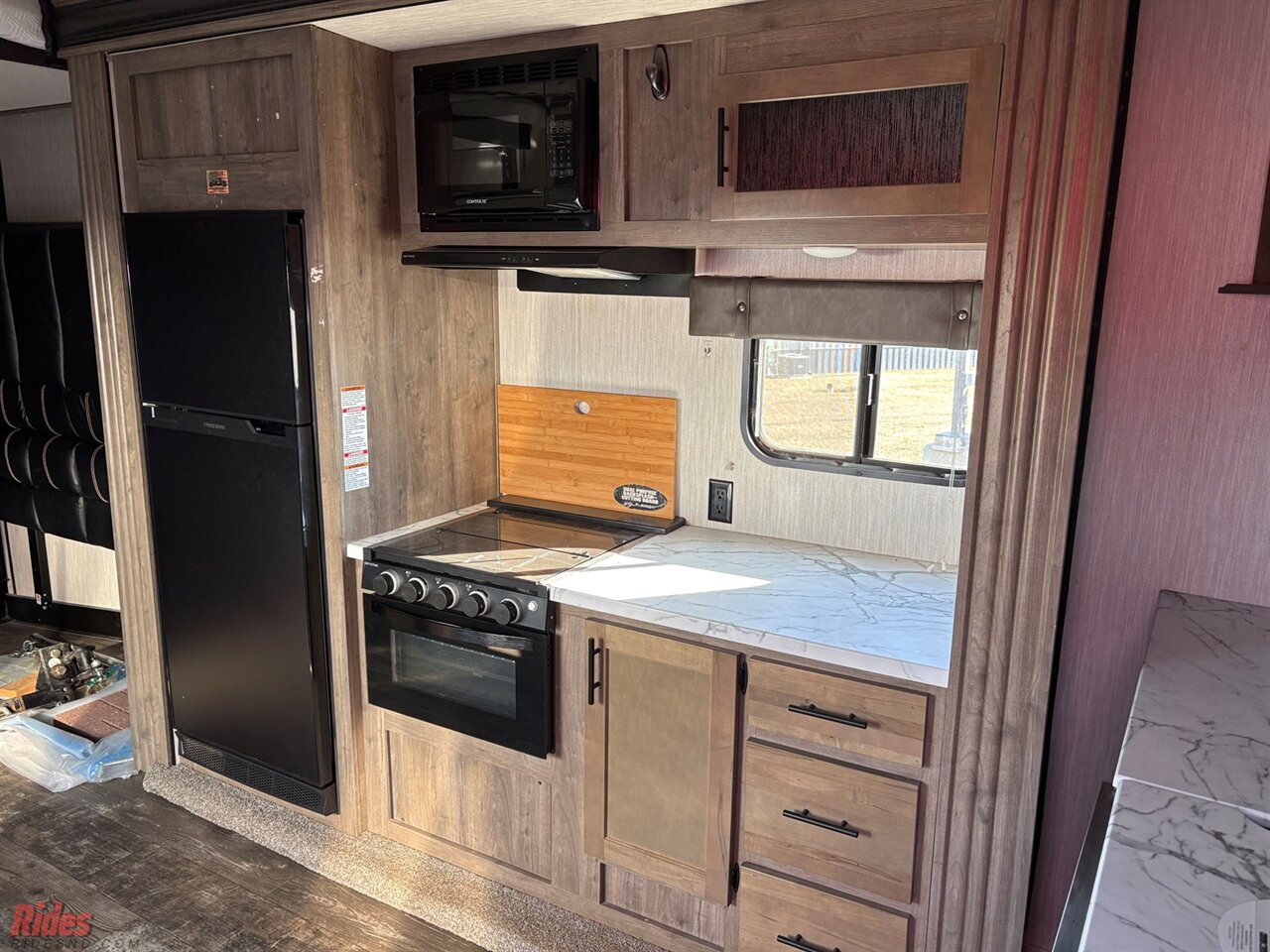 This fifth wheel include stabilizer jacks, a second 15K A/C unit in the bedroom, and 50 Amp service. You will appreciate 30 Amp service in the trailer, a power tongue jack, and ramp door cables. Also included are USB charging stations to keep all your gadgets charged and ready to go, premium Teddy Bear bunk mats for comfortability, and a reverse activated light and backup camera for easy loading and unloading!