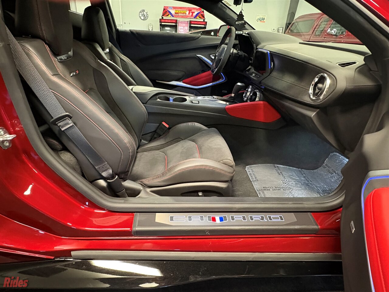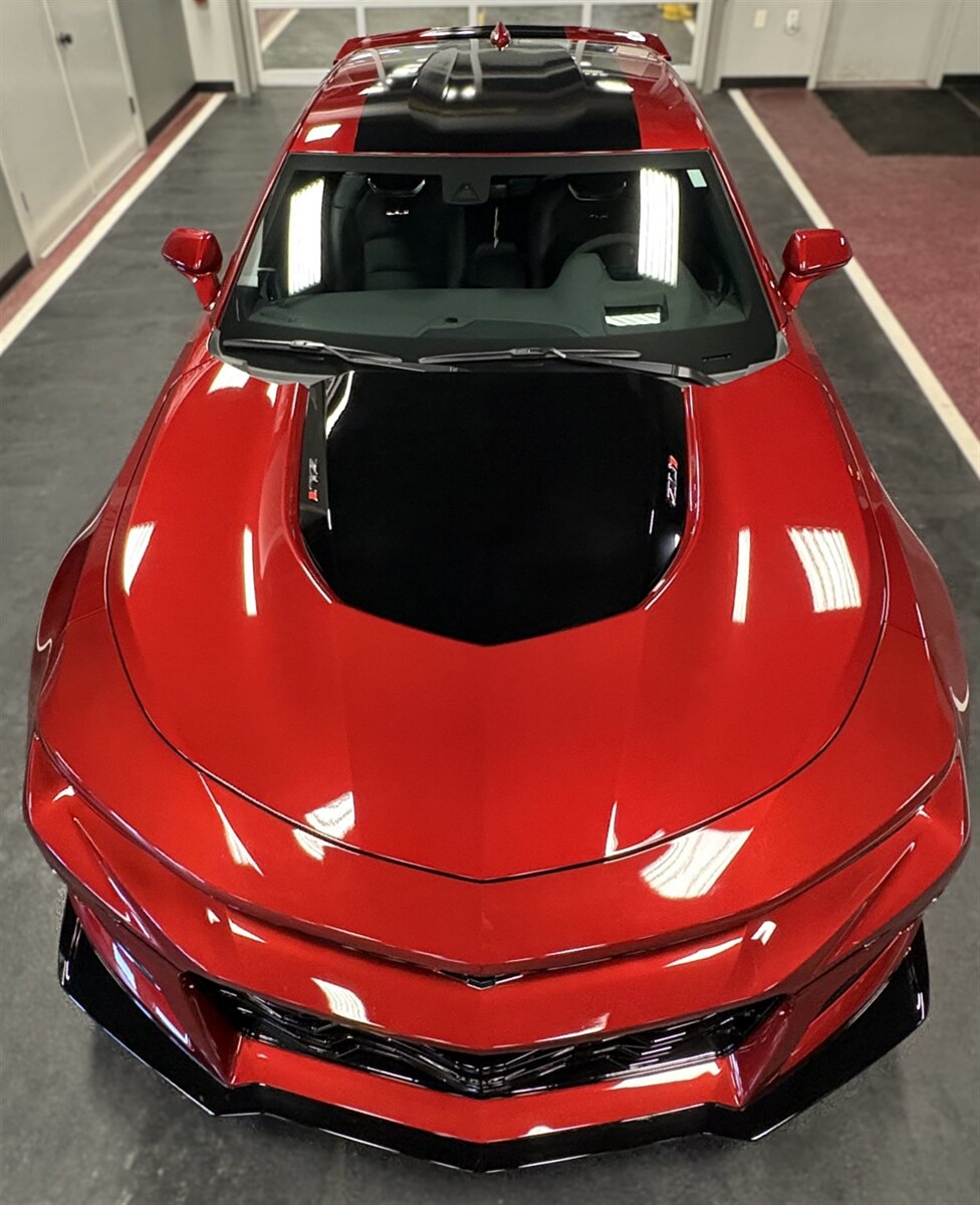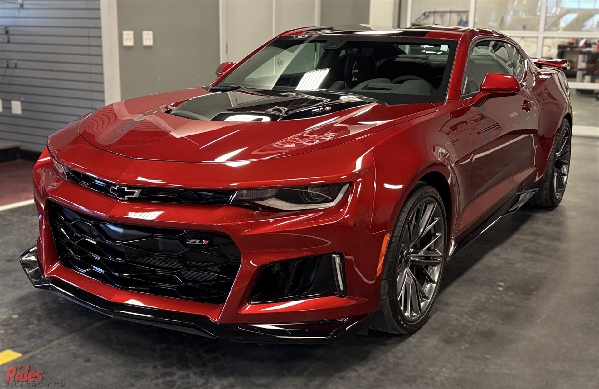 Presenting the 2023 Chevrolet Camaro ZL1 in Radiant Red Tintcoat, a color that doesn’t whisper performance. It declares it in bold brushstrokes of molten crimson. Under showroom lights it glows. Under streetlights it smolders. Under throttle it becomes a streak.