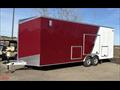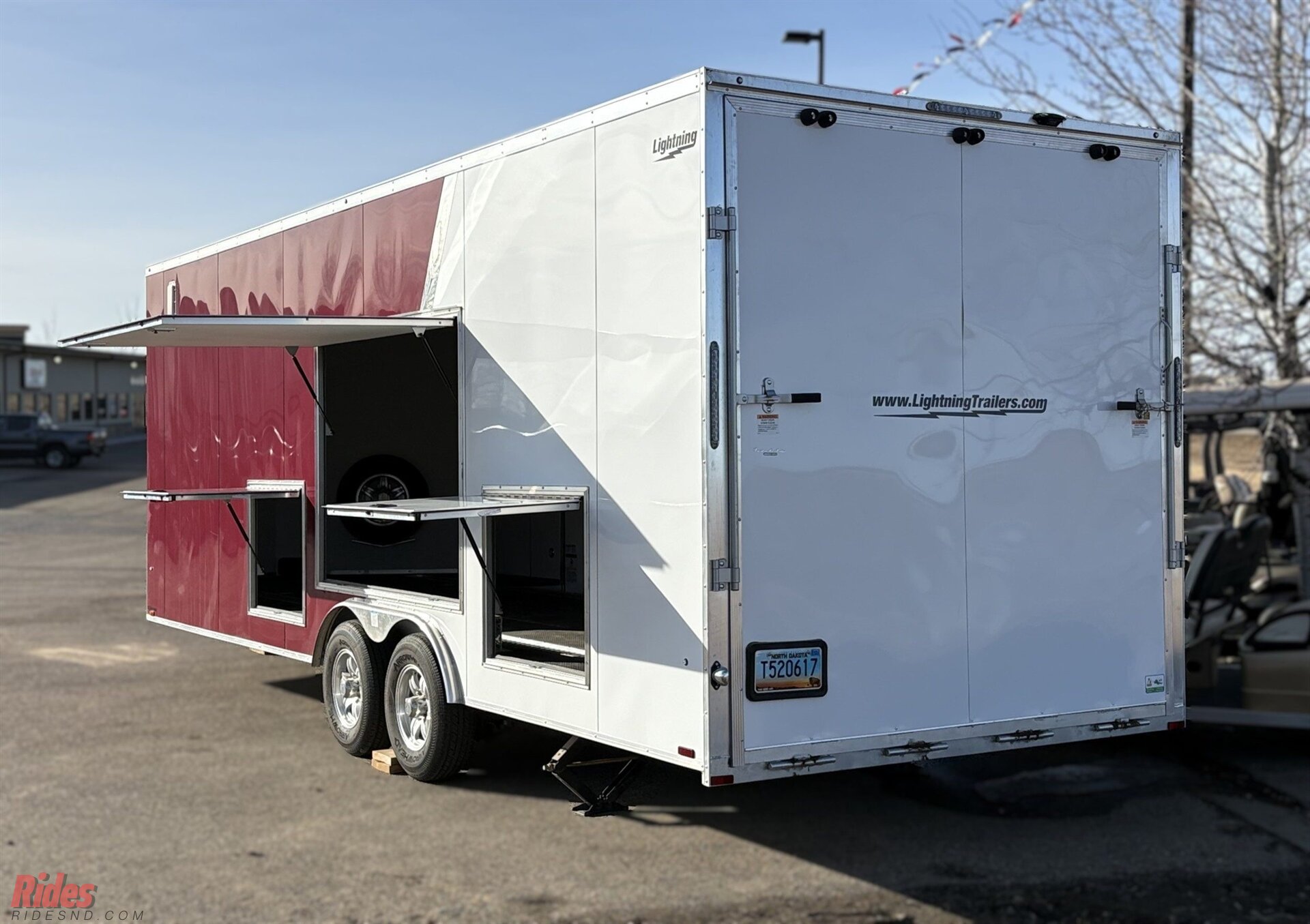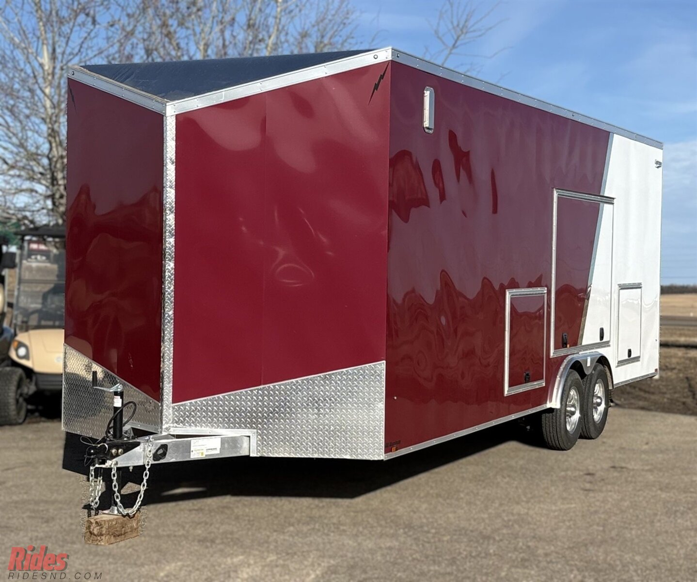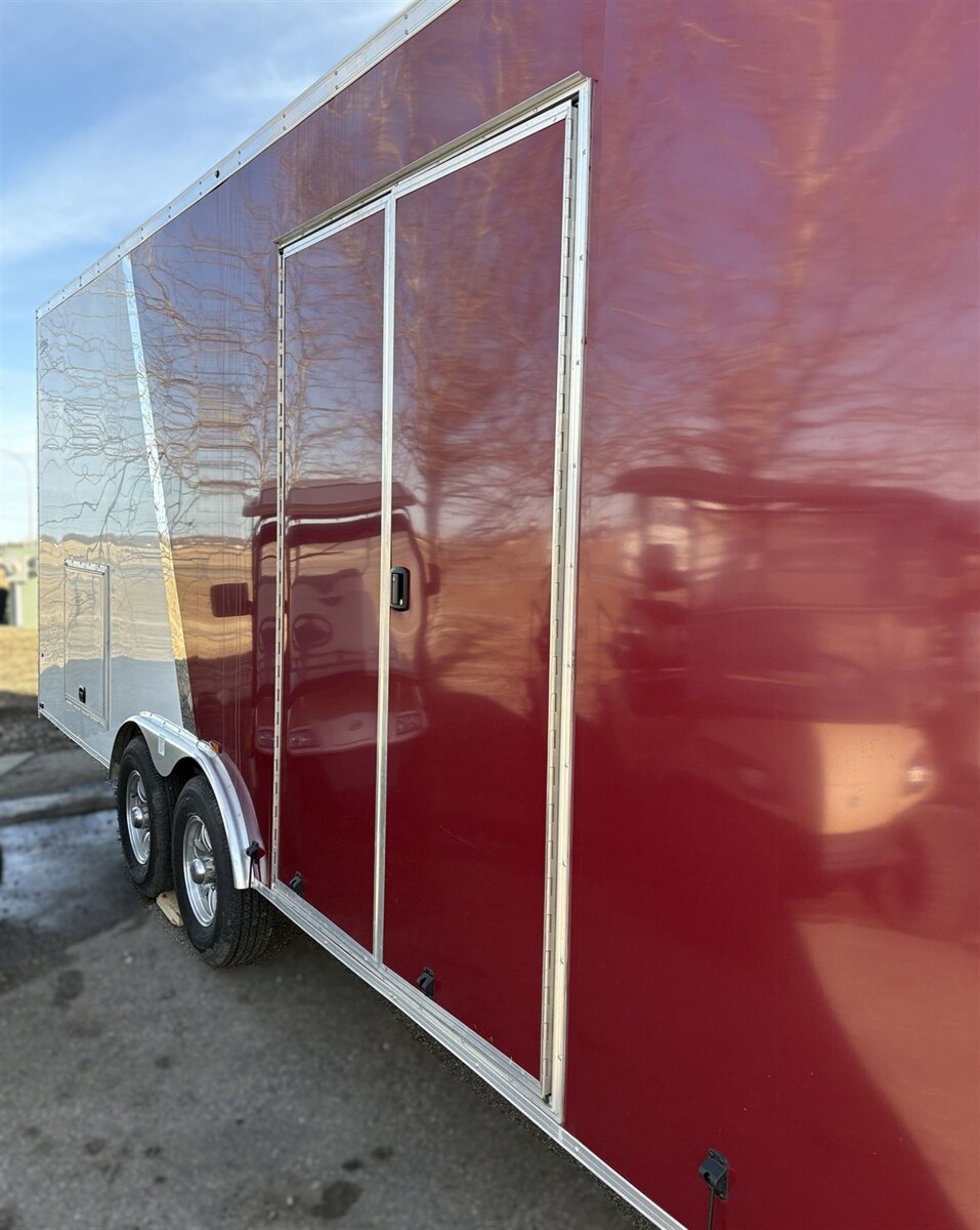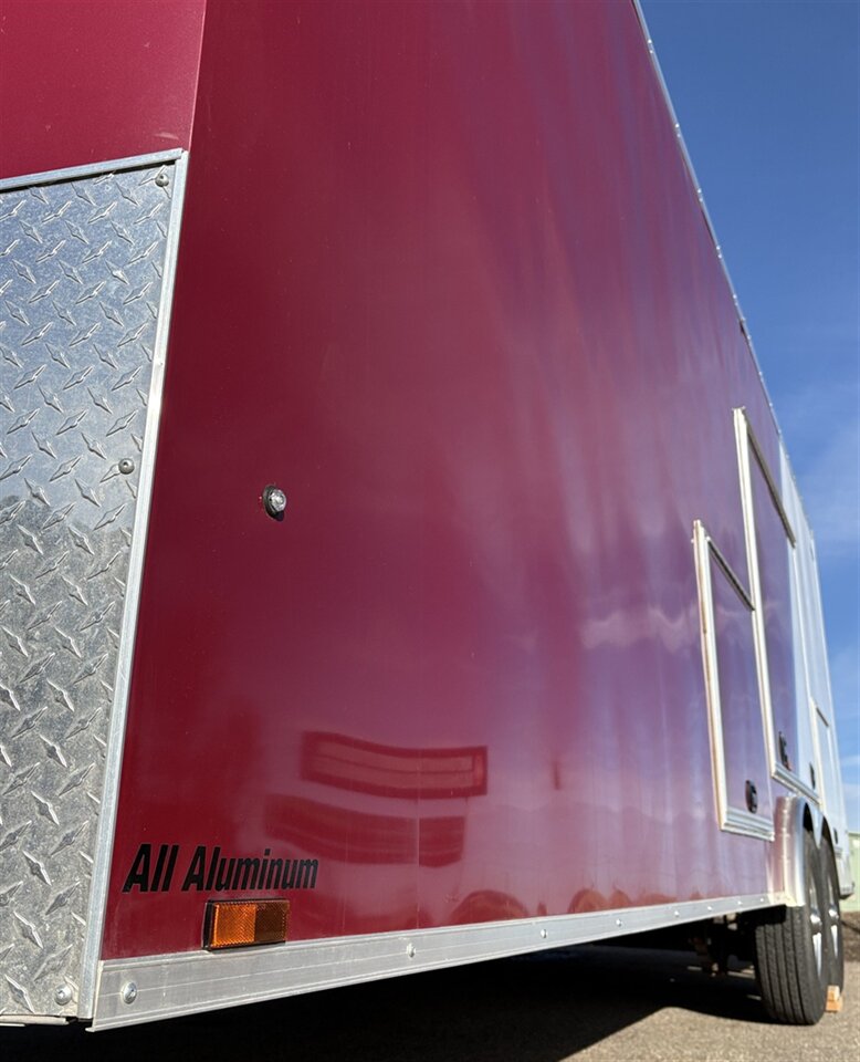 The exterior is finished in a sharp burgundy color that stands out in a world full of plain white trailers. It looks clean, bold, and just a little more upscale whether you’re pulling into a jobsite, a race track, or a weekend ride.