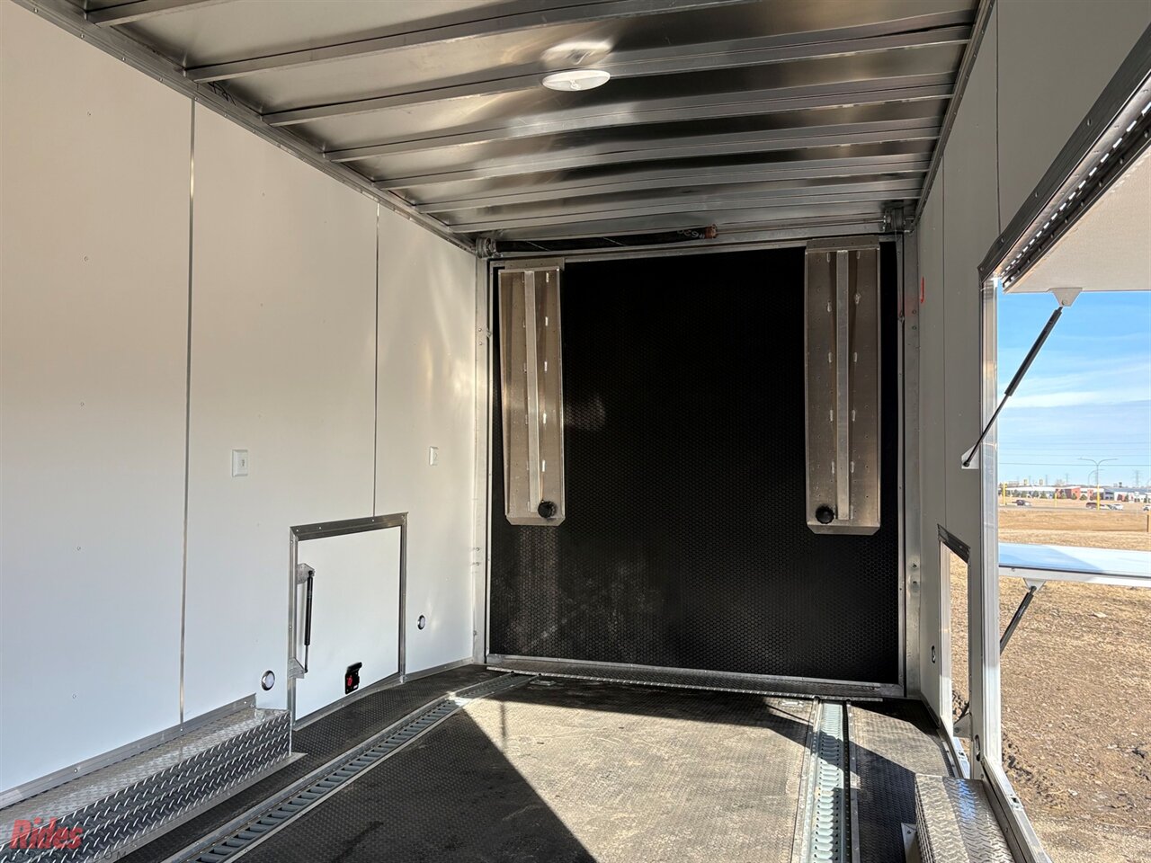 Interior: 3/4" engineered wood floor, white vinyl walls, and (2) 12V LED dome lights with switch