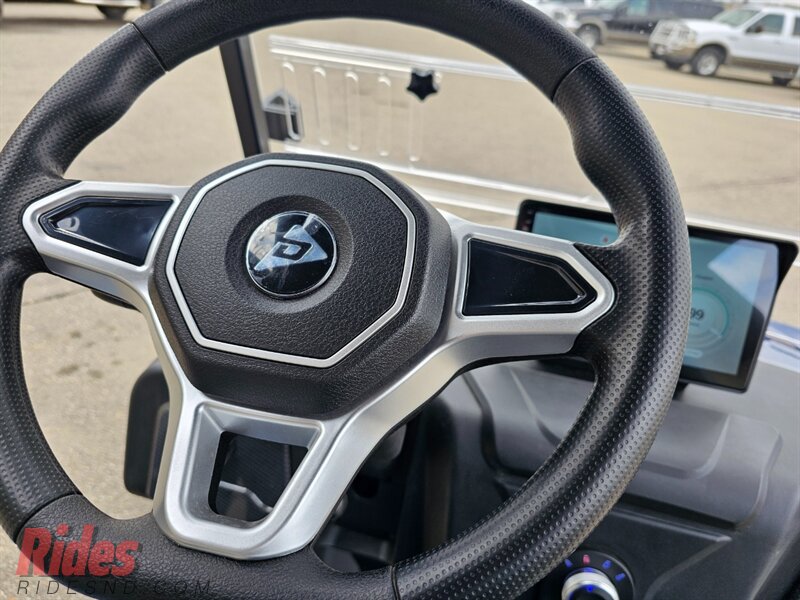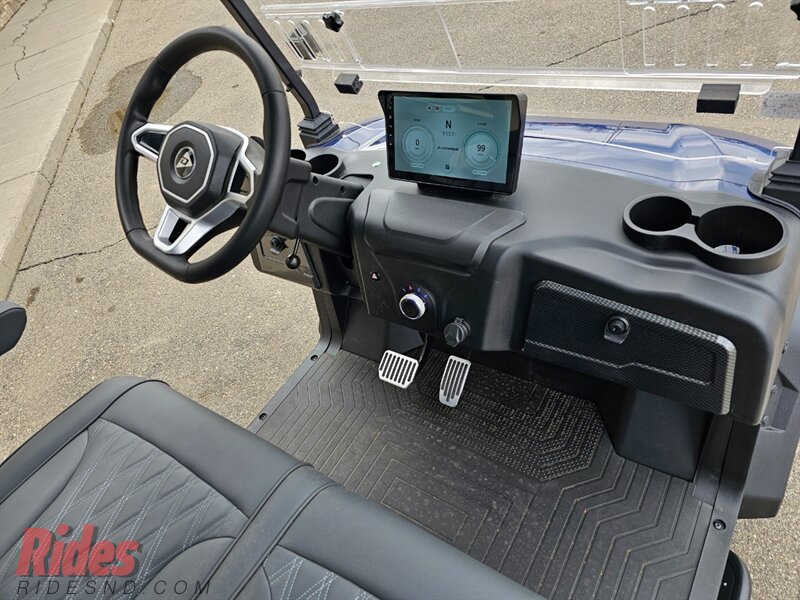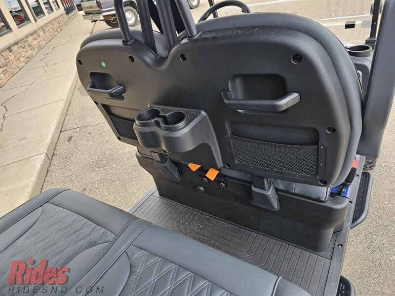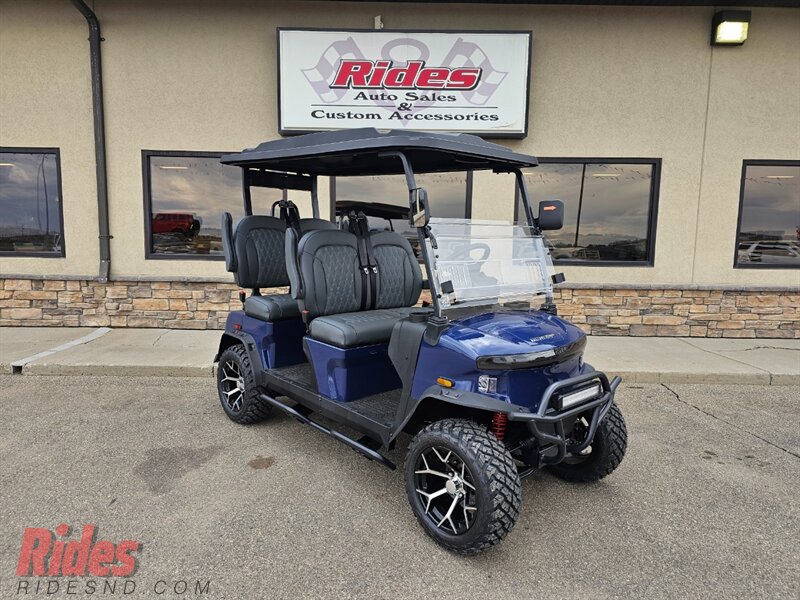 THIS ROVER XL 4 PASSENGER LITHIUM GOLF CART WELL EQUIPPED WITH LONG TOP & FOLDING WINDSHIELD, LED LIGHTS, LED LIGHT BAR, BRUSH GUARD, CUSTOM TILT STEERING WHEEL, DISPLAY SCREEN, BLUETOOTH SPEAKERS, LOADED WITH APPLE CARPLAY & ANDROID AUTO, BACK-UP CAMERA, SIDE MIRRORS W/ LED, REAR VIEW MIRROR, SEAT BELTS, TURN SIGNALS, UPGRADED PREMIUM SEATS, DUAL USB CHARGING PORTS, CANOPY SAFETY HANDLES, FRONT STORAGE COMPARTMENT, REAR GRAB BAR W/ STORAGE COMPARTMENT & CUP HOLDERS, LIFT KIT, ADJUSTABLE SHOCKS, 14″ ALLOY WHEELS W/ 23″ TIRES AND SO MUCH MORE.