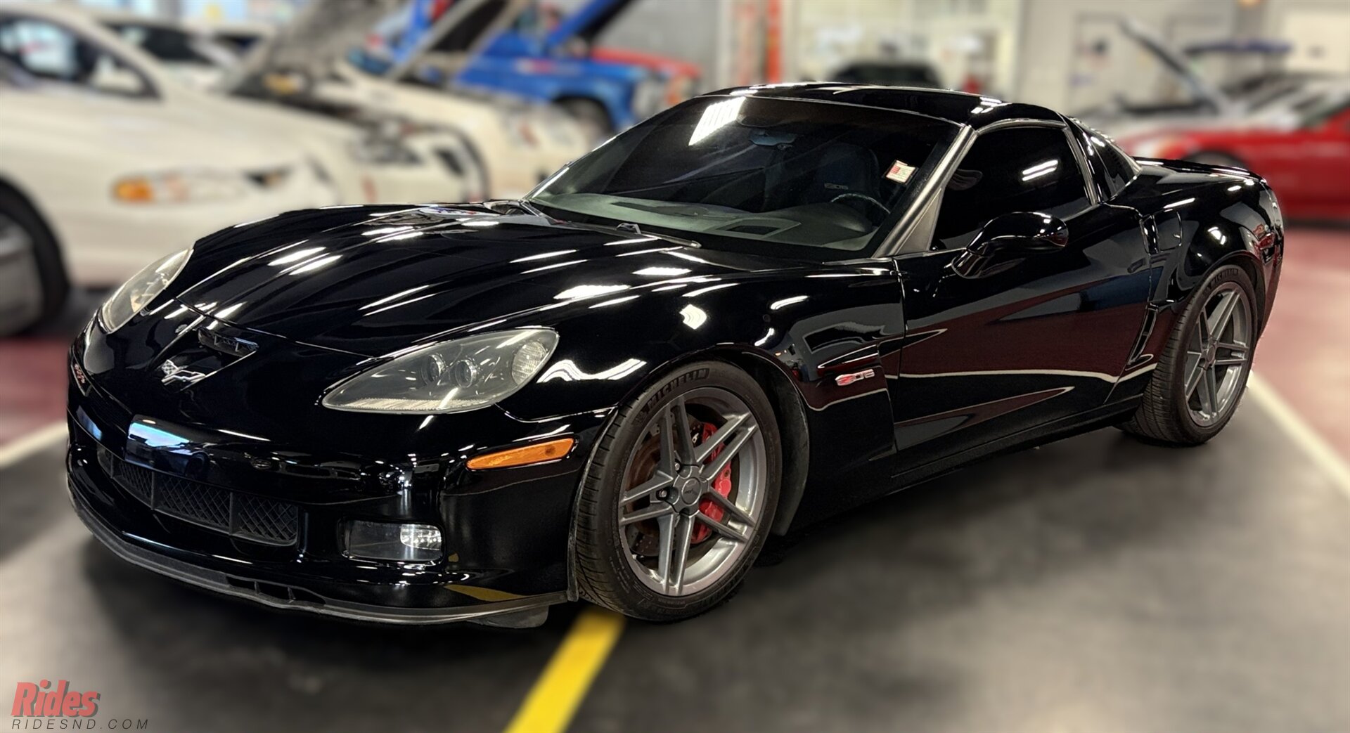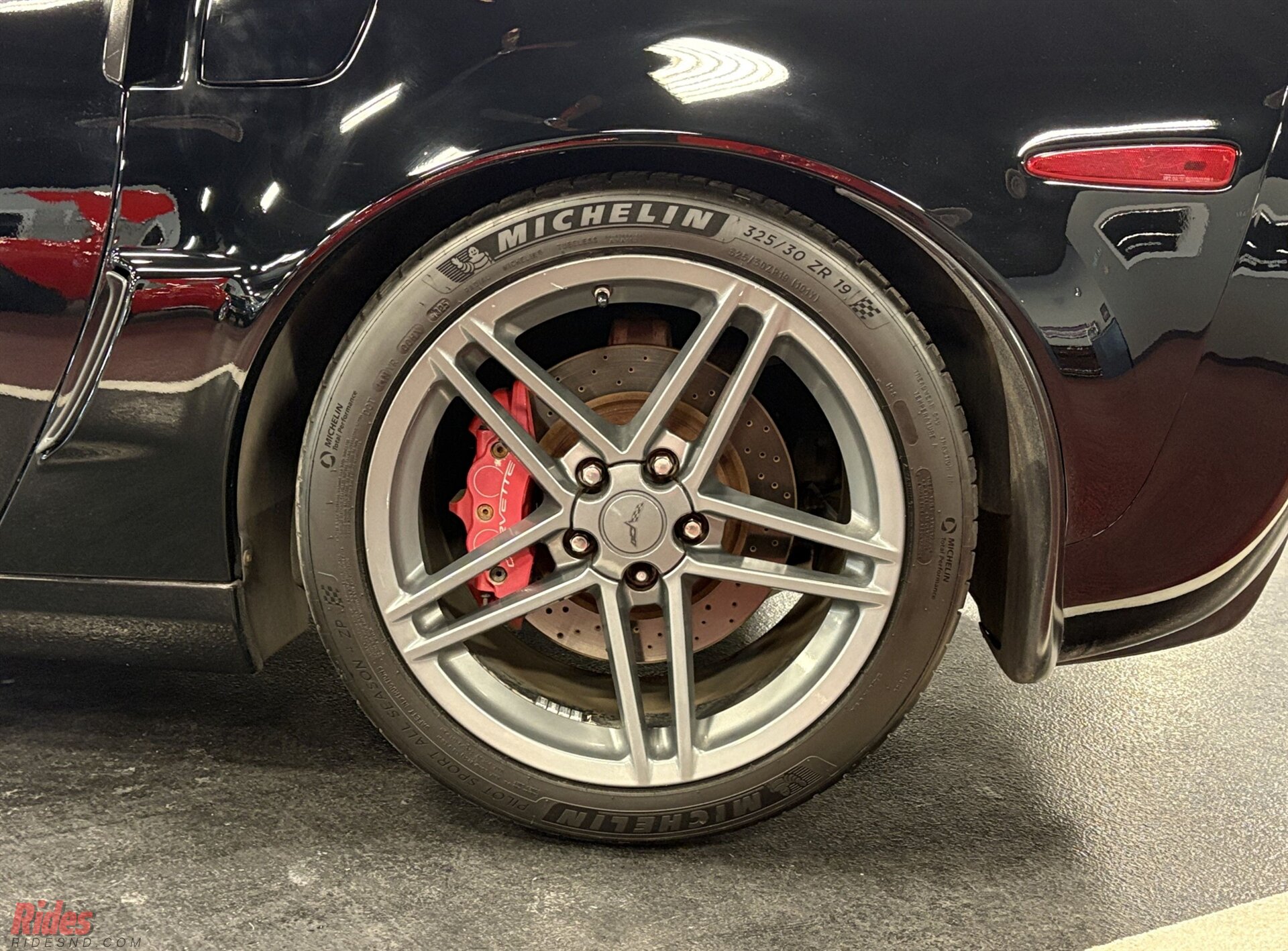 Wide performance tires wrapped around aggressive Z06 wheels