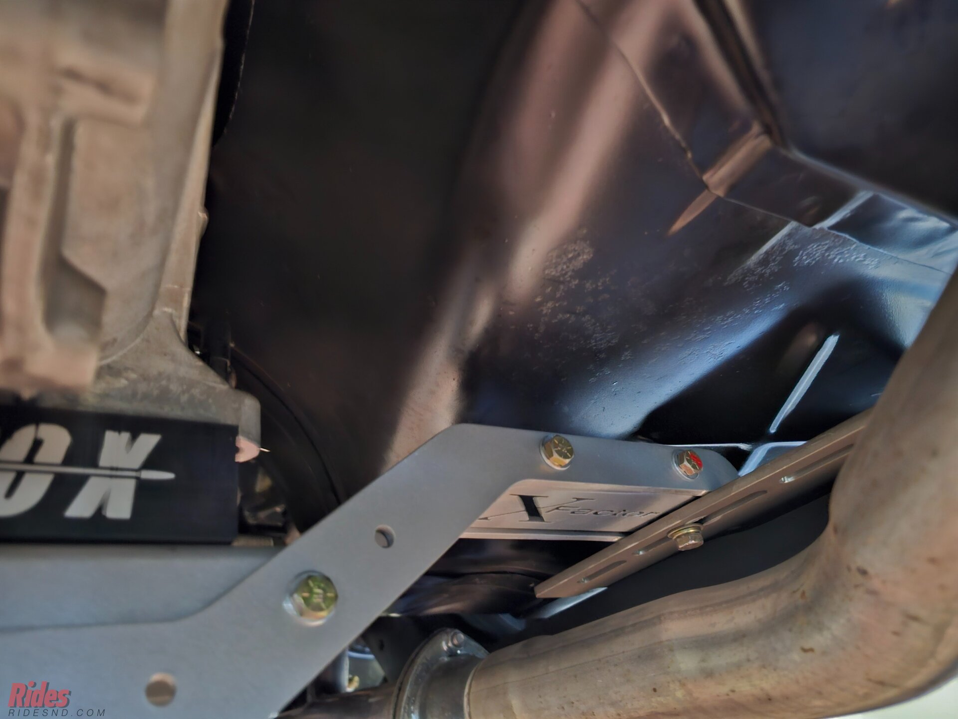 In back, the grip continues with Detroit Speed suspension, including tubular upper and lower control arms and adjustable coil-overs. The chassis is further strengthened with Competition Engineering frame connectors, tying the front and rear together for rock-solid handling.