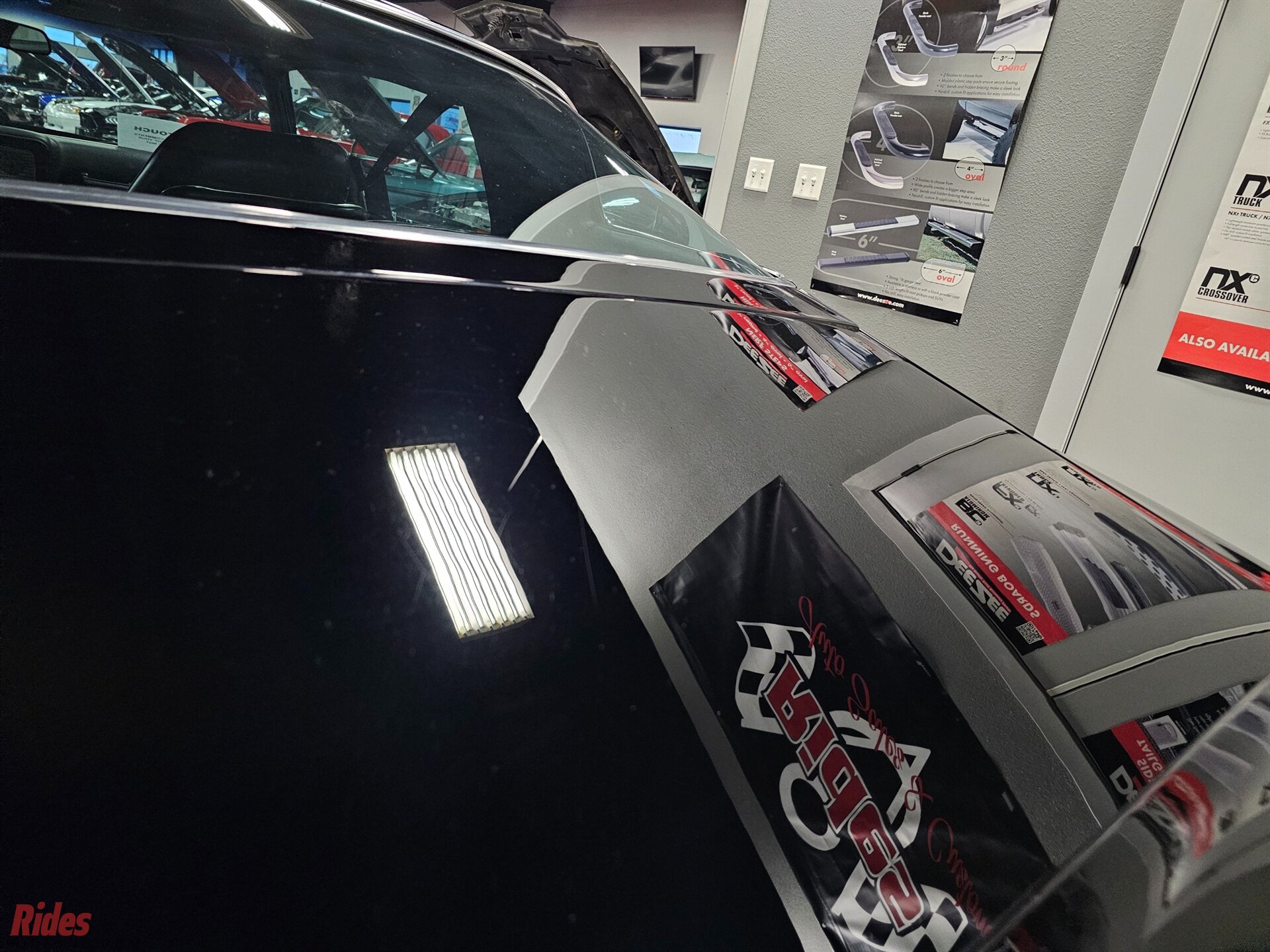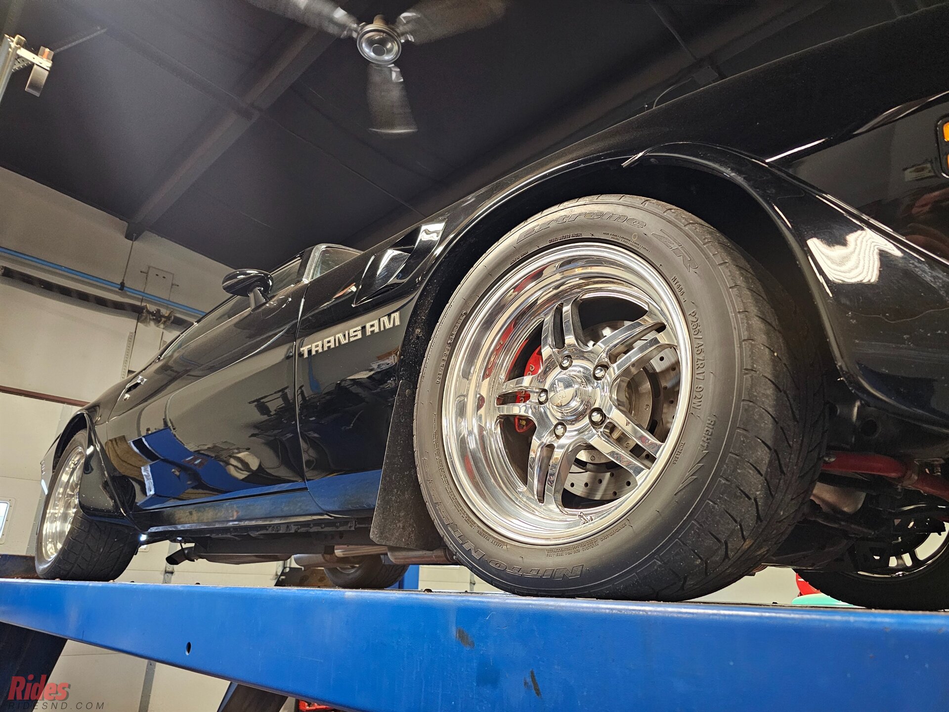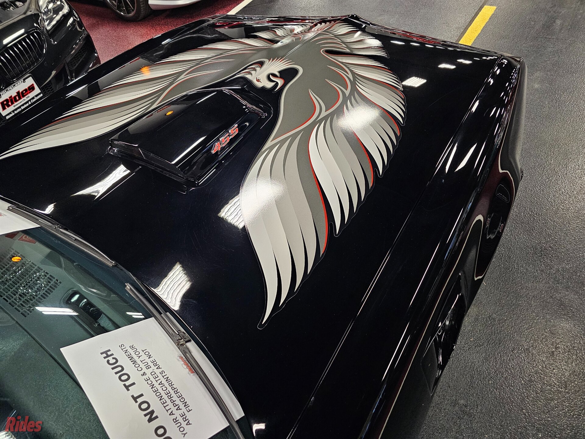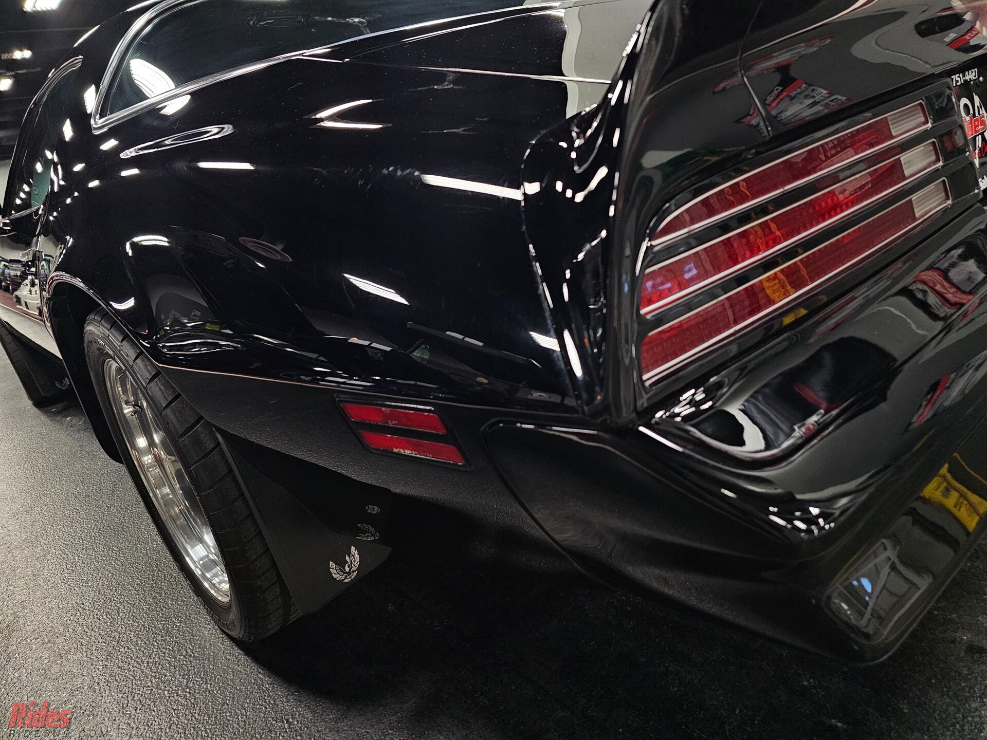 The car exhales through a custom exhaust system with Flowmaster mufflers, giving it that deep, authoritative muscle-car growl every Trans Am deserves.