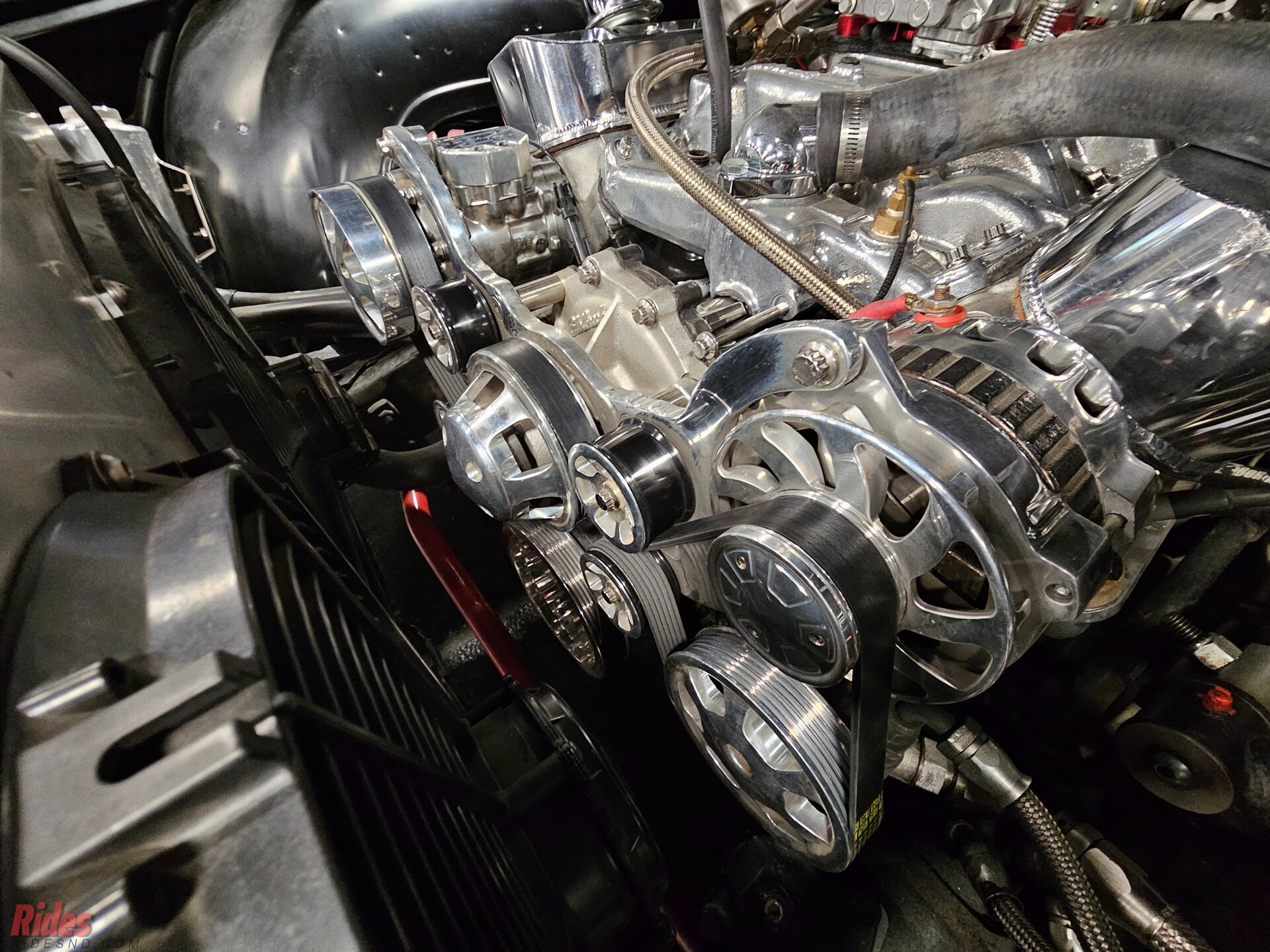 A Wilwood aluminum master cylinder, Billet Specialties power steering, Vintage Air Gen IV heat & A/C, and a billet hood hinge kit elevate both performance and comfort. Keeping this beast cool is a Ron Francis aluminum radiator with matching overflow bottle and electric fans, the perfect setup for a big 455 built to perform.